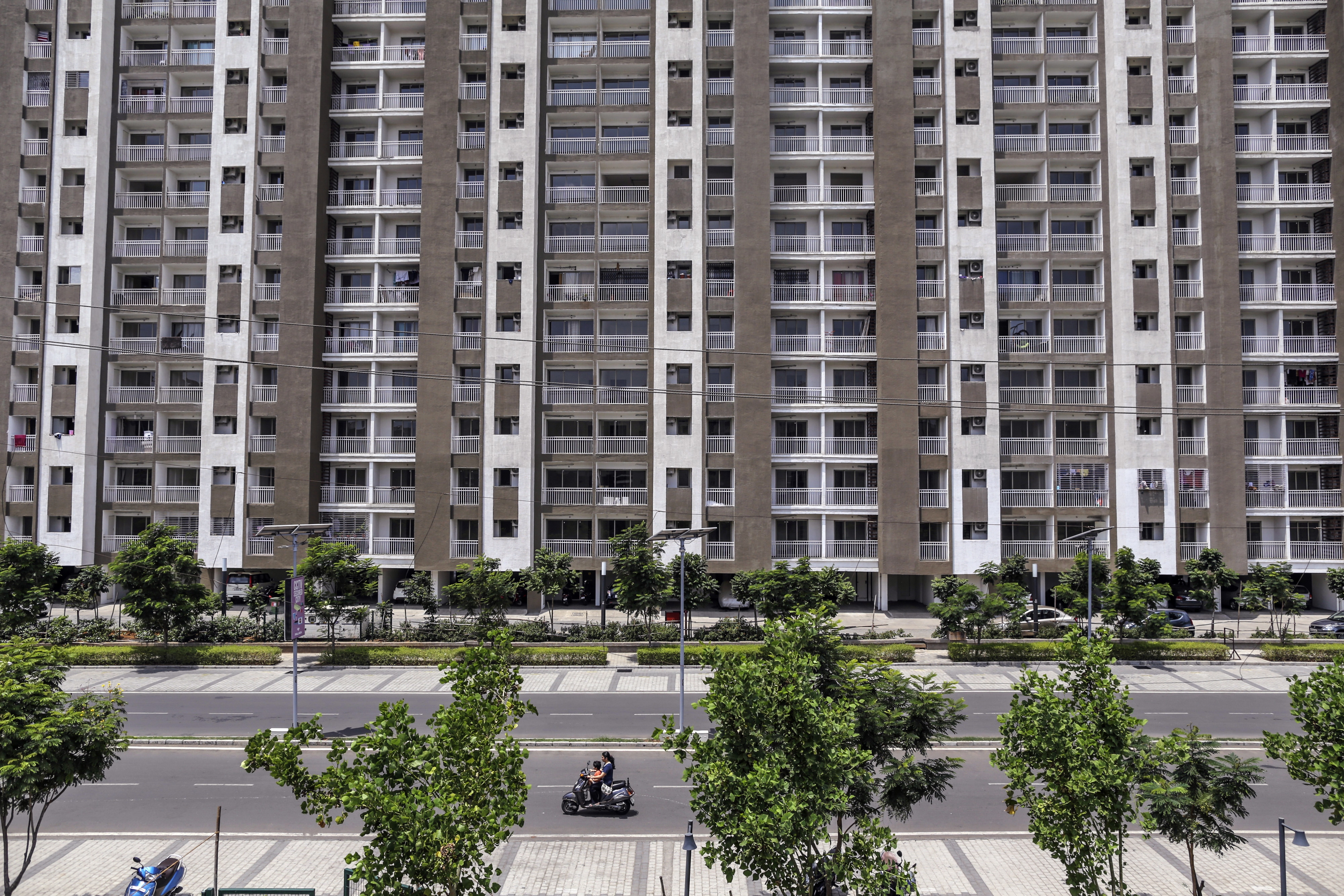 Residential apartment buildings stand in India. (Photographer: Dhiraj Singh/Bloomberg)
