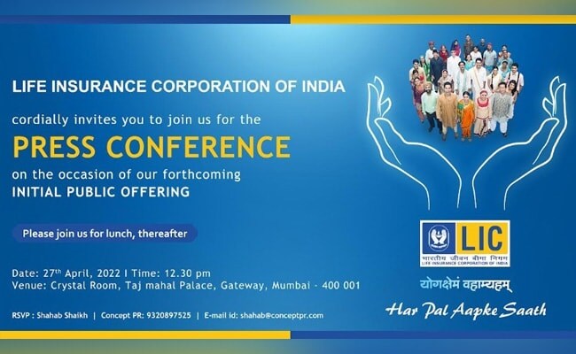 On its public issue offer, Life Insurance Corporation (LIC) has invited the media for a press conference at 1230 pm on Wednesday, April 27, 2022.
