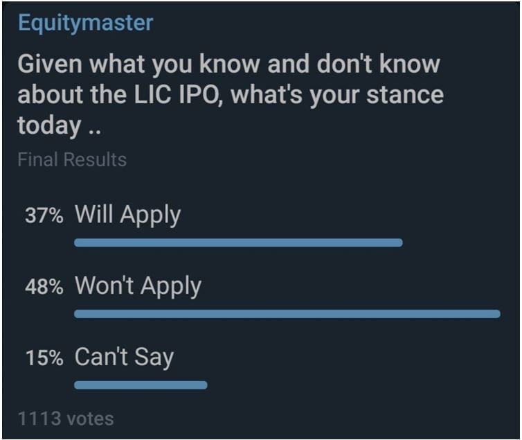 To understanding what our readers are thinking, we ran a poll on Equitymaster's Telegram Channel over the weekend.