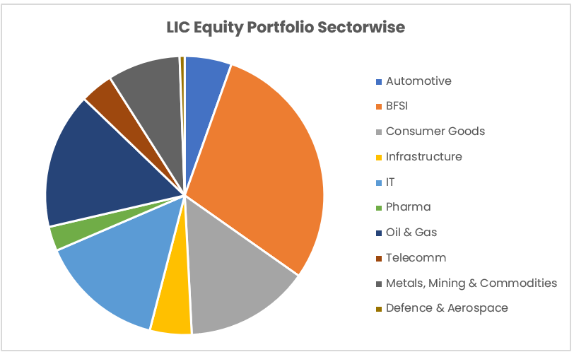 IT and Consumer Goods: The insurer has allocated 14% each to the IT and Consumer Goods sectors, balancing its portfolio with export-oriented growth (tech) and domestic consumption stories.