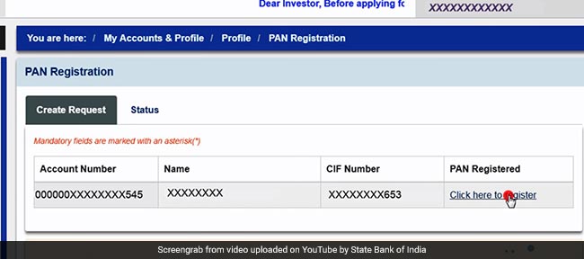 At this stage, the "click here to register" option is displayed against all accounts where PAN has not been registered, according to SBI.
