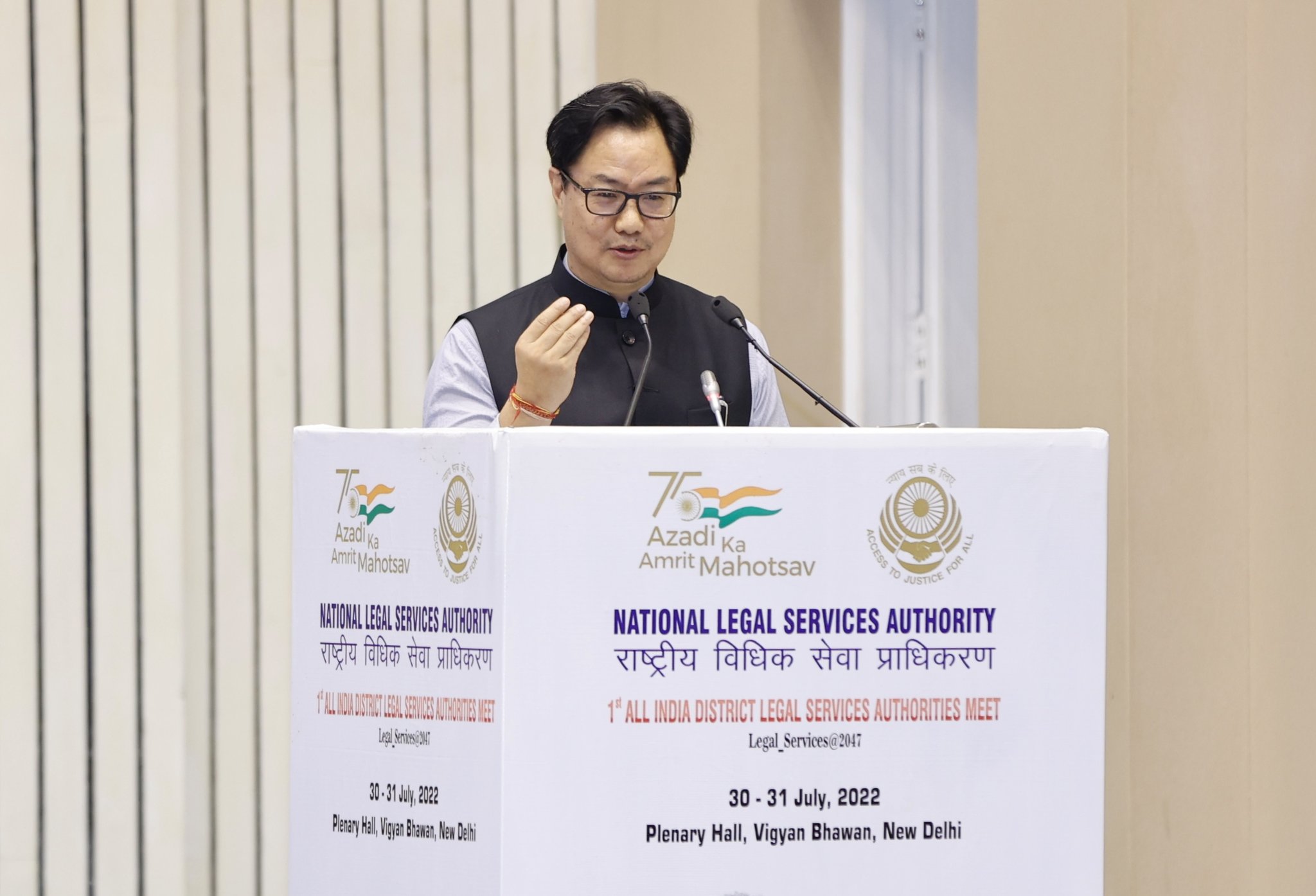 Union Law Minister Kiren Rijiju at the First All India District Legal Services Authorities Meet in Delhi. (Source: Official Twitter Handle of Minister Kiren Rijiju)