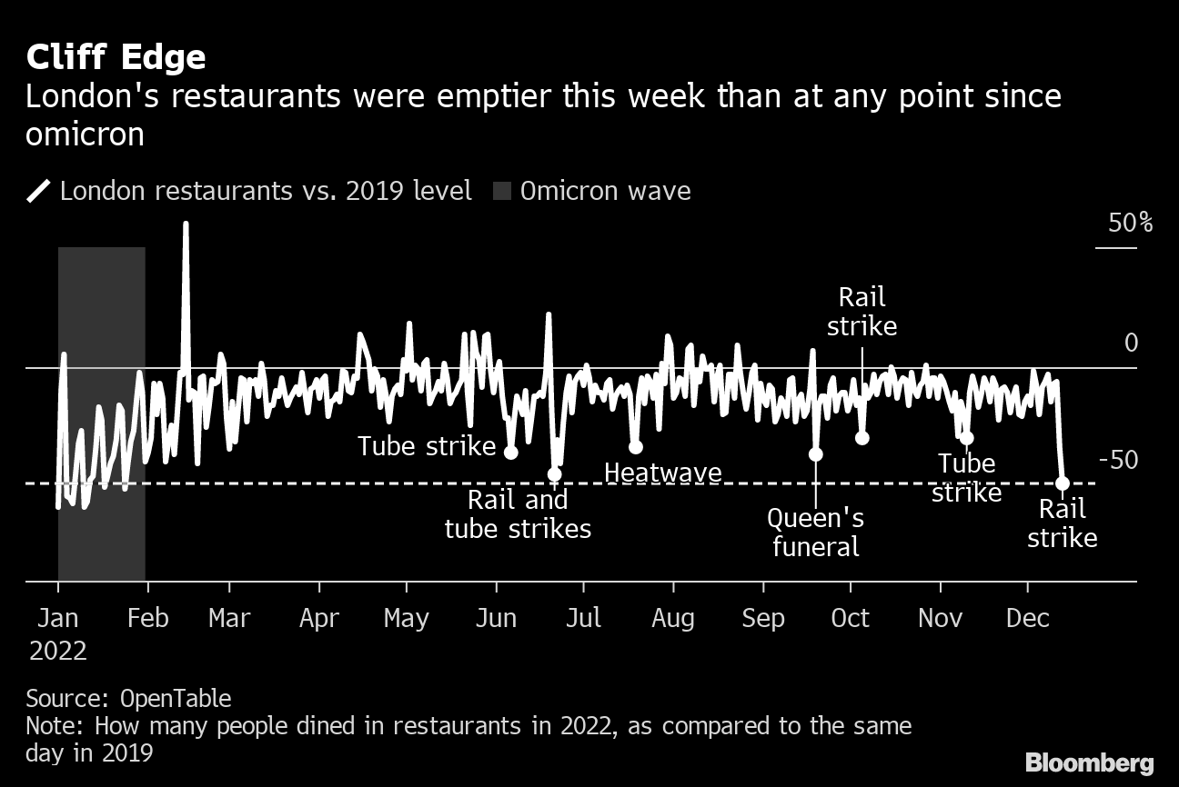 (Bloomberg) -- London's pubs and restaurants that survived Covid and the widespread adoption of working-from-home are now facing another threat — persistent train strikes.
