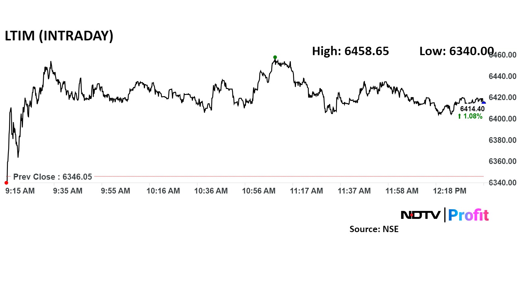 Shares of LTIMindtree were trading 0.99% higher at Rs 6,408.45 apiece on the NSE, compared to a 0.22% decline in the benchmark Nifty 50 at 12:21 p.m.