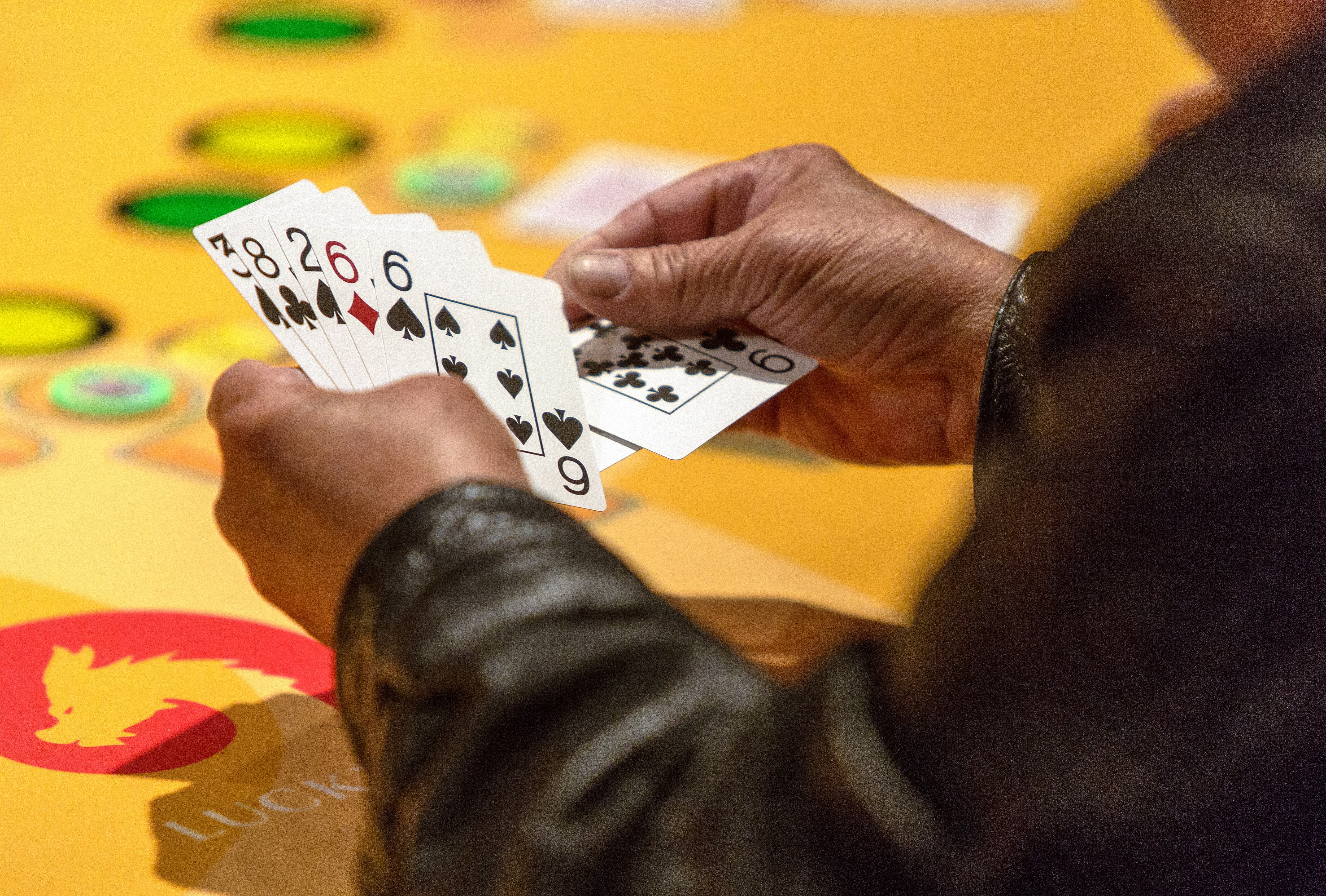A player views his cards at a game table. (Photographer: Tim Rue/Bloomberg)