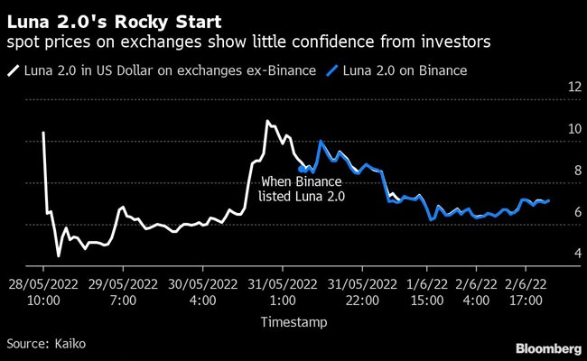 The average price of the Luna 2.0 token has remained below $11 in the week since they were distributed by Terra, according to data complied by tracker Kaiko.