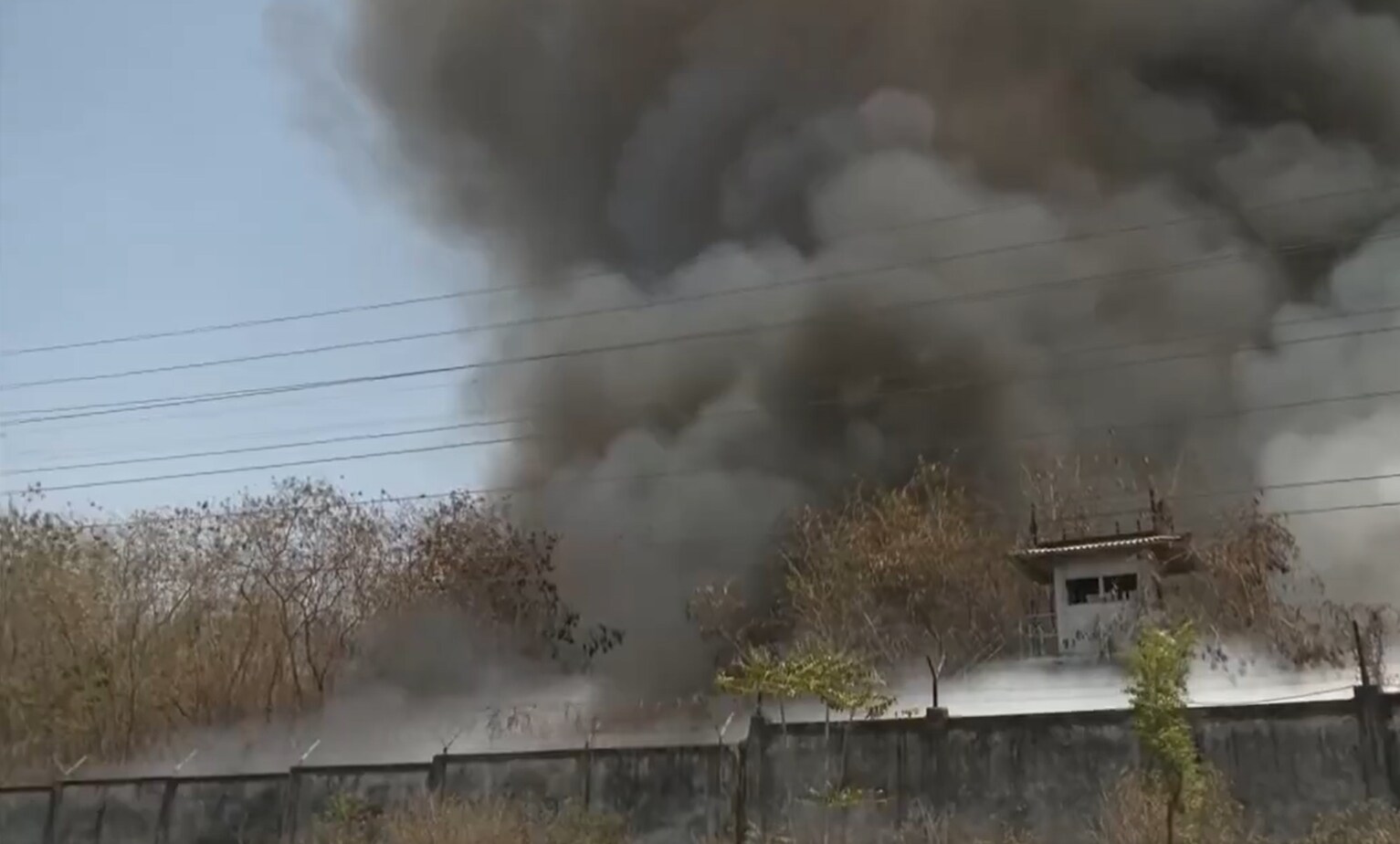 #WATCH | Bhopal, Madhya Pradesh: A huge fire broke out in the BHEL (Bharat Heavy Electricals Limited) premises. The cause of the fire is yet to be ascertained. Fire-fighting operations are underway. Further details are awaited. pic.twitter.com/q5G7p1ESdW
