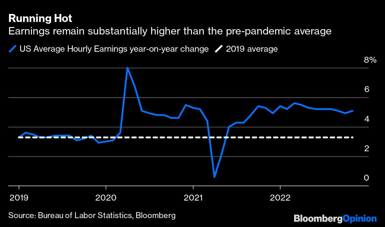 Average hourly earnings can, in normal times, comfortably hover a bit above the Federal Reserve's 2% inflation target. But the number has been running at more than 5% for over a year. Until this crucial measure comes back under control, the Fed can't stop hiking interest rates. Given that the US central bank effectively dictates how high global interest rates will have to go, the must-watch economic indicator for 2023 will be US labor-market data, specifically on pay.
