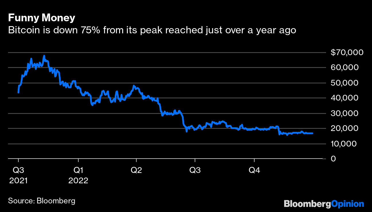 “A scammers' paradise or digital gold?” we wrote a year ago about the world of cryptocurrencies. “Ponzi schemes or the future of money? The coming year will decide.” The collapse of digital exchange FTX, the arrest of Sam Bankman-Fried on fraud charges and the accompanying evaporation of billions of real-world dollars have, to our minds, settled the question firmly on the side of the skeptics. Bitcoin, the first-among-equals for laser-eyed enthusiasts, languishes below $17,000, after peaking at almost $70,000 a little more than a year ago.