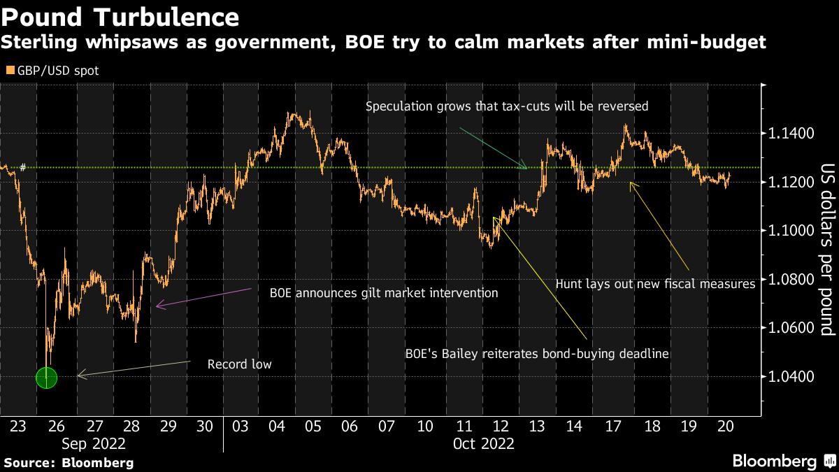 The pound strengthened to above $1.12, and the yield on UK 10-year gilts was near levels before the mini-budget was announced last month. The FTSE 250 Index rallied 0.9%.