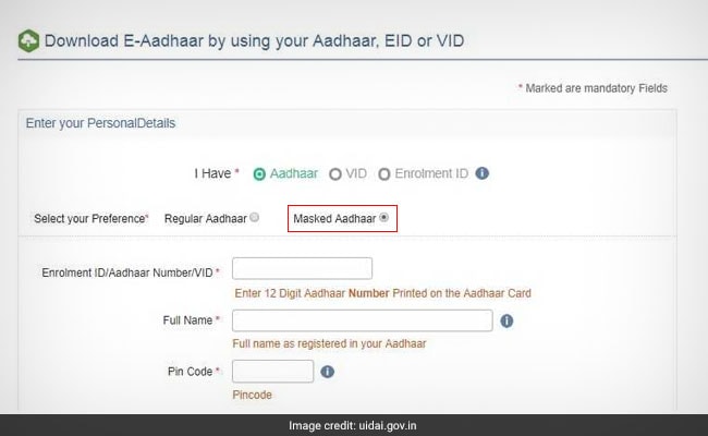 (Choosing the "masked Aadhaar" option leads to a copy of Aadhaar in which the first eight digits of the personal identification number are not revealed.)