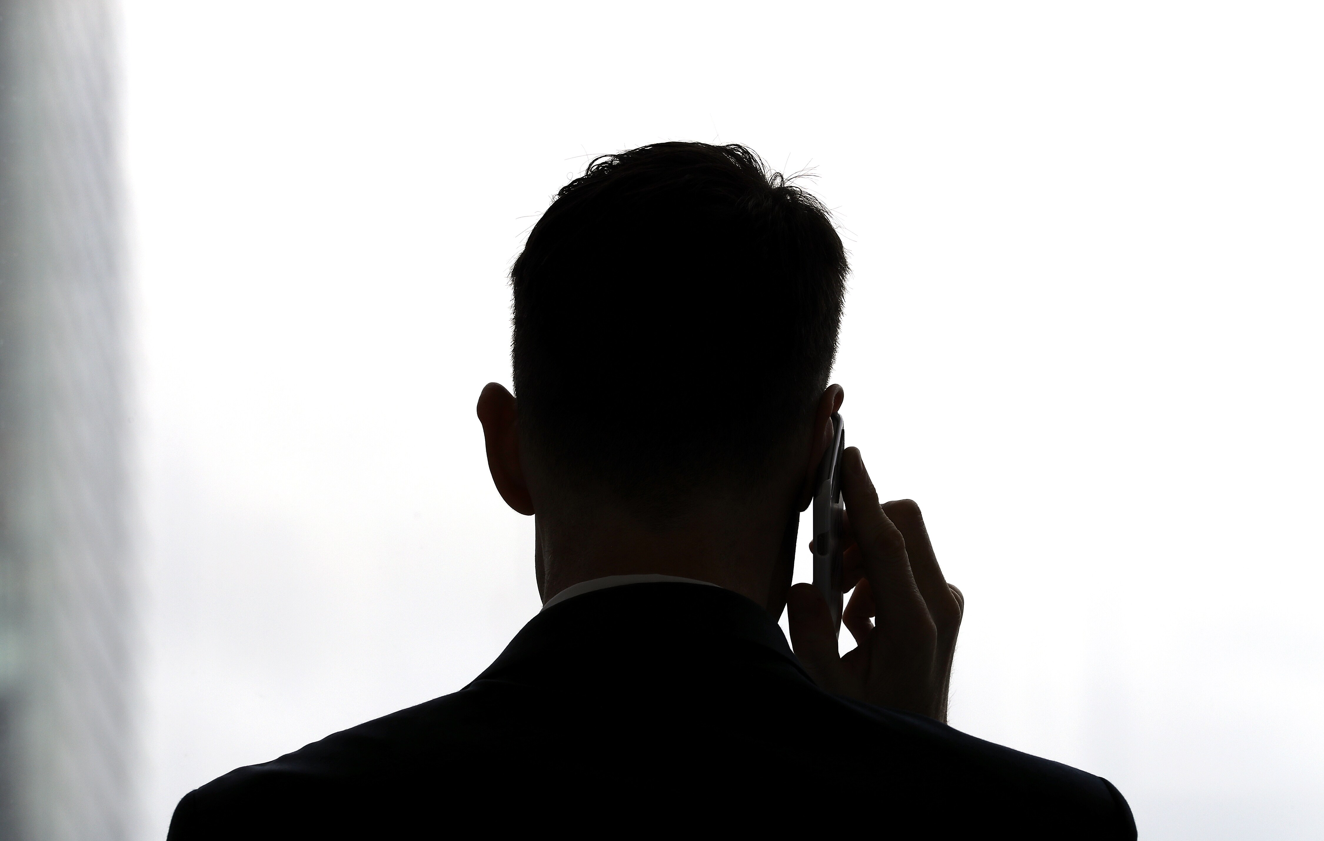 The silhouette of a man talking on a mobile phone. (Photographer: Aaron M. Sprecher/Bloomberg)