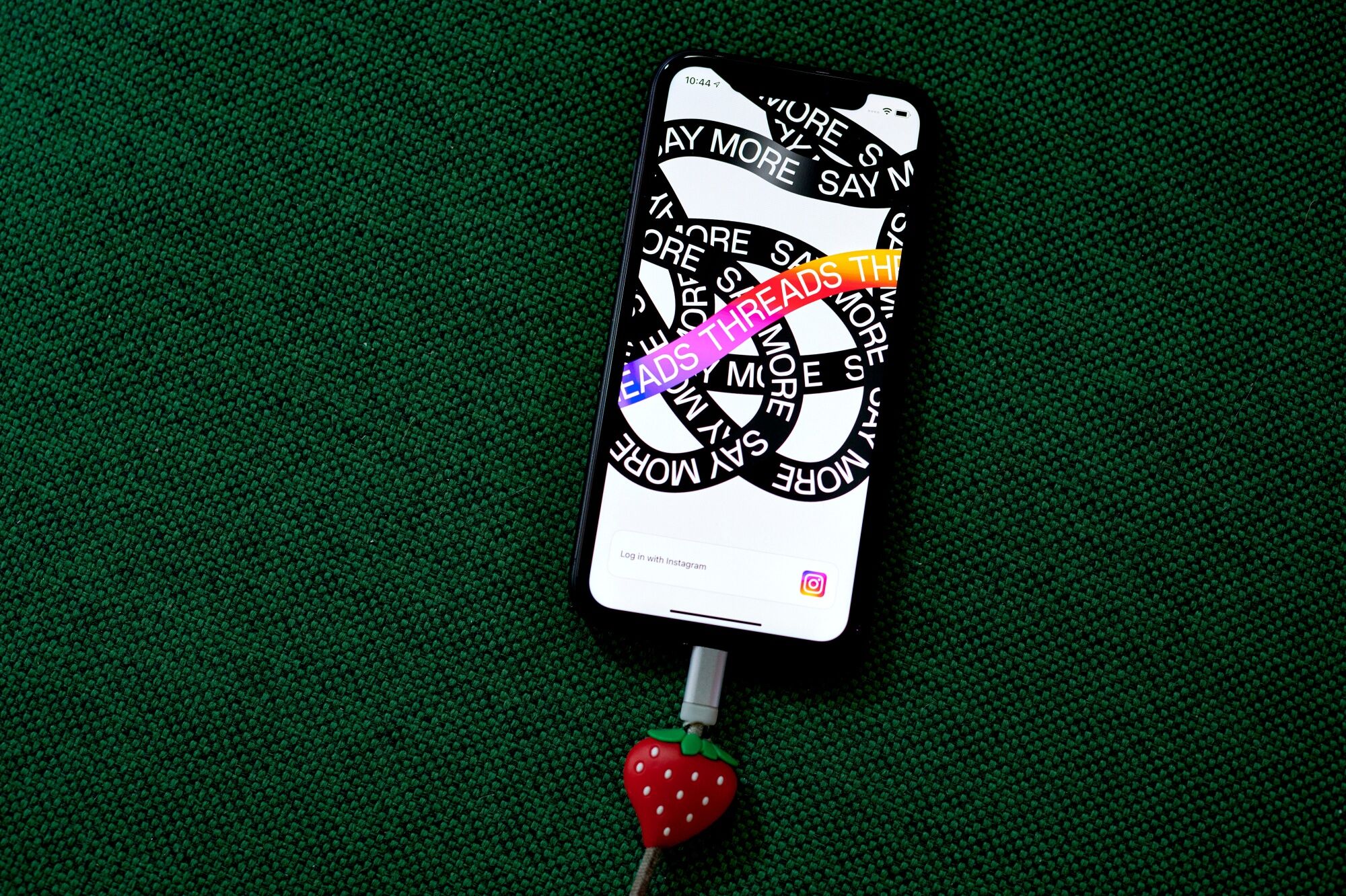 The Threads application on a smartphone arranged in the Brooklyn borough of New York, US, on Tuesday, July 11, 2023. Meta Platforms Inc.'s answer to Twitter Inc. has rocketed to 100 million users in less than a week, Chief Executive Officer Mark Zuckerberg announced on Monday.
