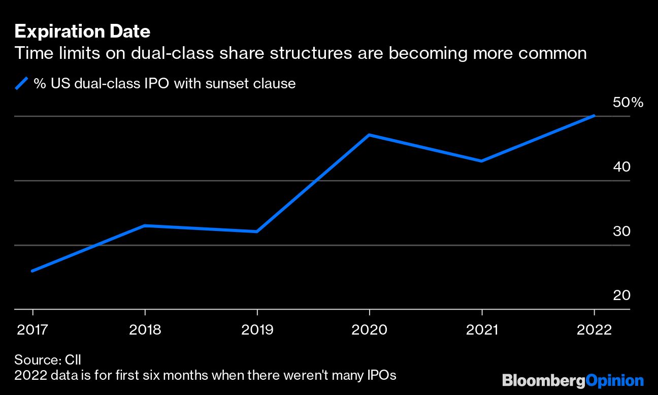Shareholders need an insurance policy: How likely is it that all the businesses that went public with-dual class shares in 2021 are led by the next Larry Page or Sergey Brin? And when almost half of tech IPOs come with special stock, do investors really have a choice?