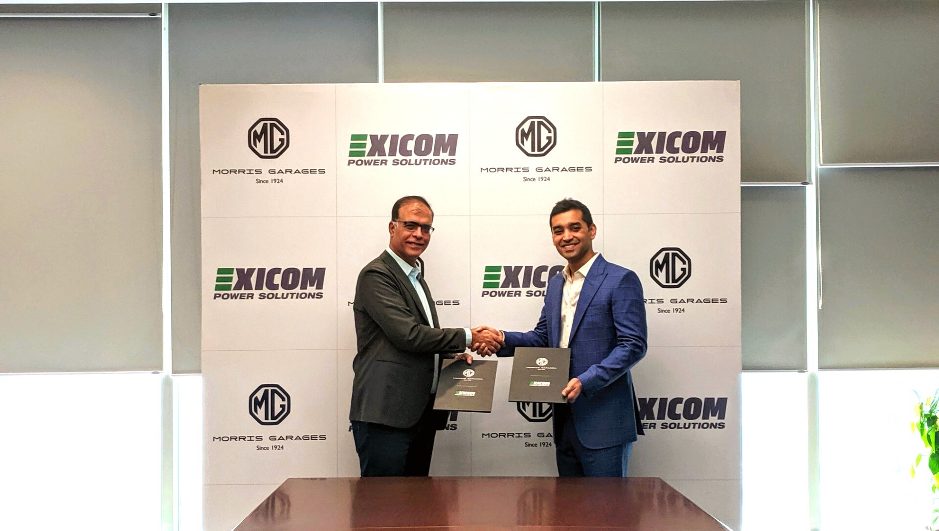 MG Motor India President Rajeev Chaba, left, and Exicom Tele-Systems MD Anant Nahata. (Photo: MG Motor India)