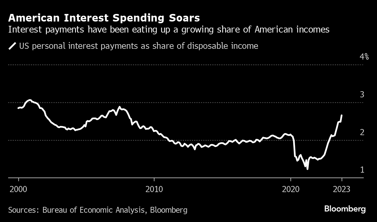 If the economic story for much of the past two years has been the impact of inflation that hit a 40-year high in 2022, a growing part of the pain for US households is the side effects of the Fed's medicine. On credit cards alone, US consumers paid a record $130 billion in interest and fees last year, according to the Consumer Financial Protection Bureau.