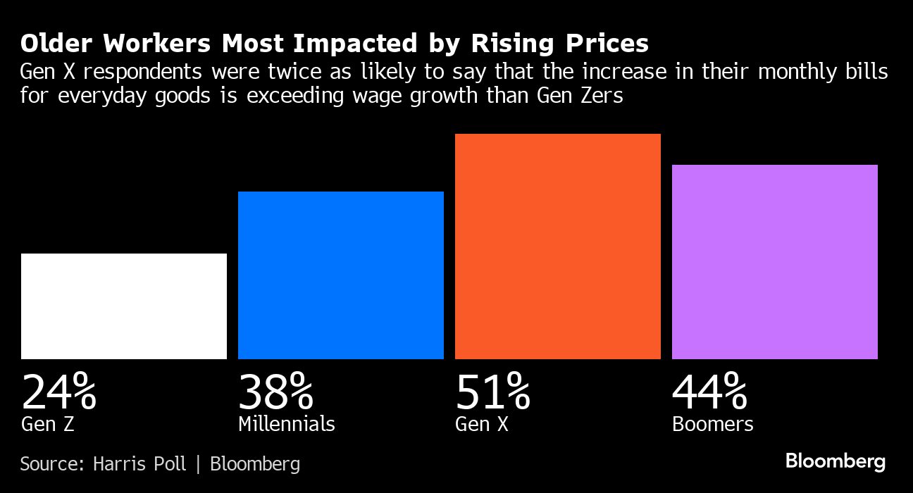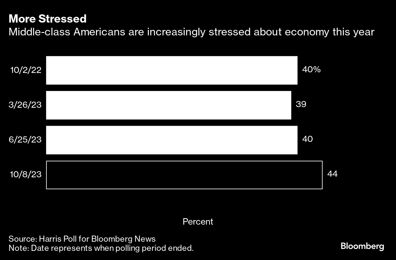 In the Harris poll, the latest in a series taken for Bloomberg over the past year, 57% of middle-class respondents said higher borrowing costs were having a negative impact on their household finances.