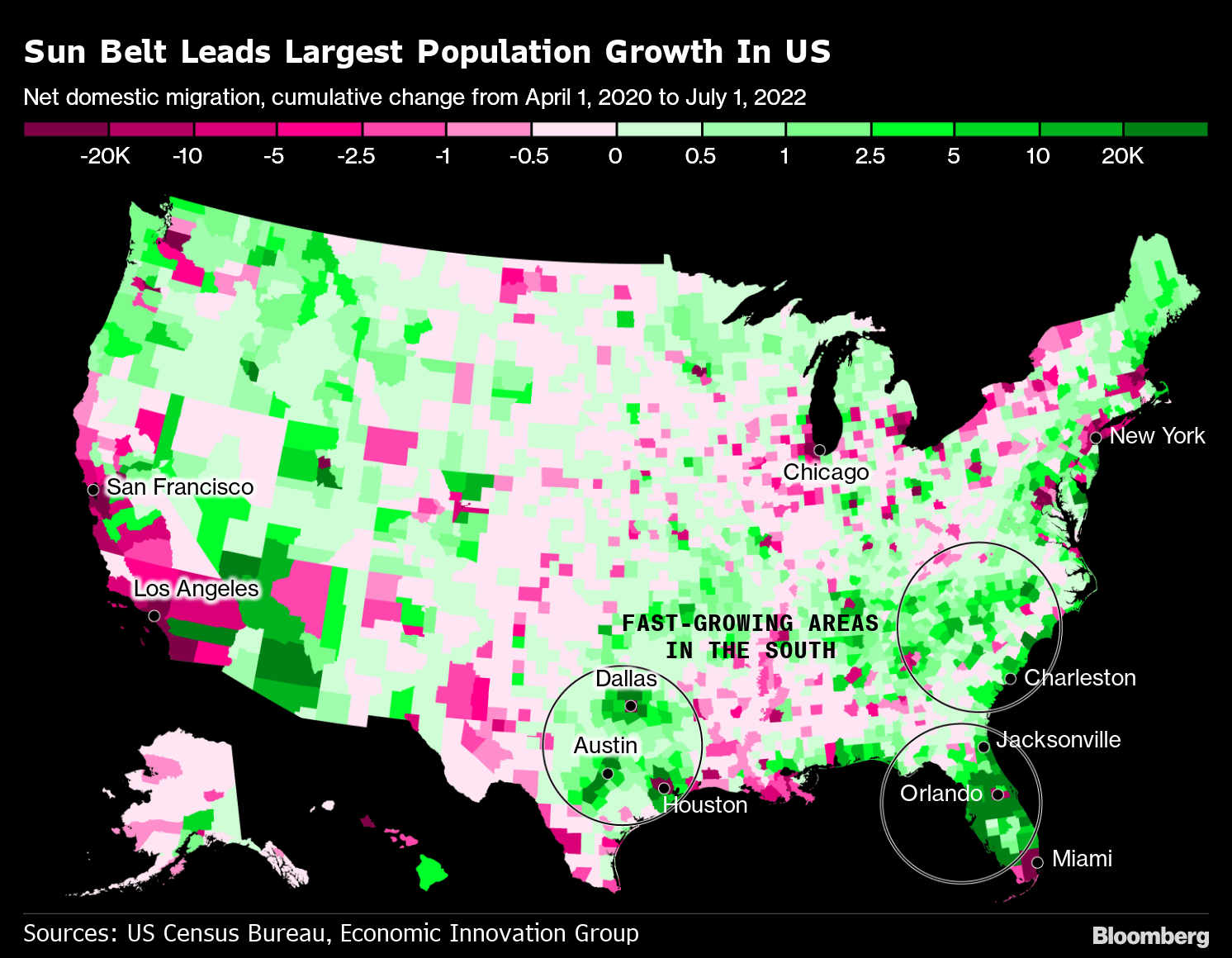 Corporations are also flocking there, with a record number of firms moving south after the pandemic, Census Bureau data show.
