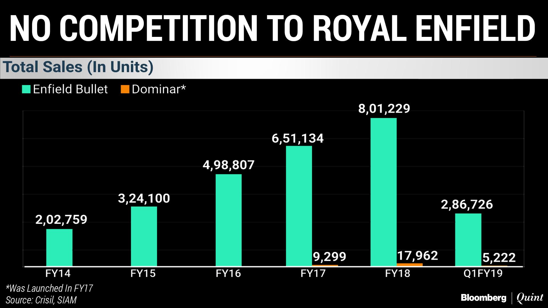 The company failed to put up a fight in the premium category dominated by Eicher Motor Ltd.'s Royal Enfield. The sales of the World War-era British brand, revived by Siddhartha Lal, quadrupled in the last five years to 8 lakh units in 2017-18.