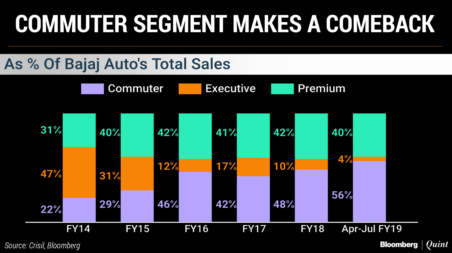 To be sure, the share of economy category more than doubled in five years to about nearly 56 percent as of July in Bajaj Auto's portfolio, according to Crisil. Demand for such models largely comes from smaller cities and rural areas, the biggest driver for two-wheeler sales in India.