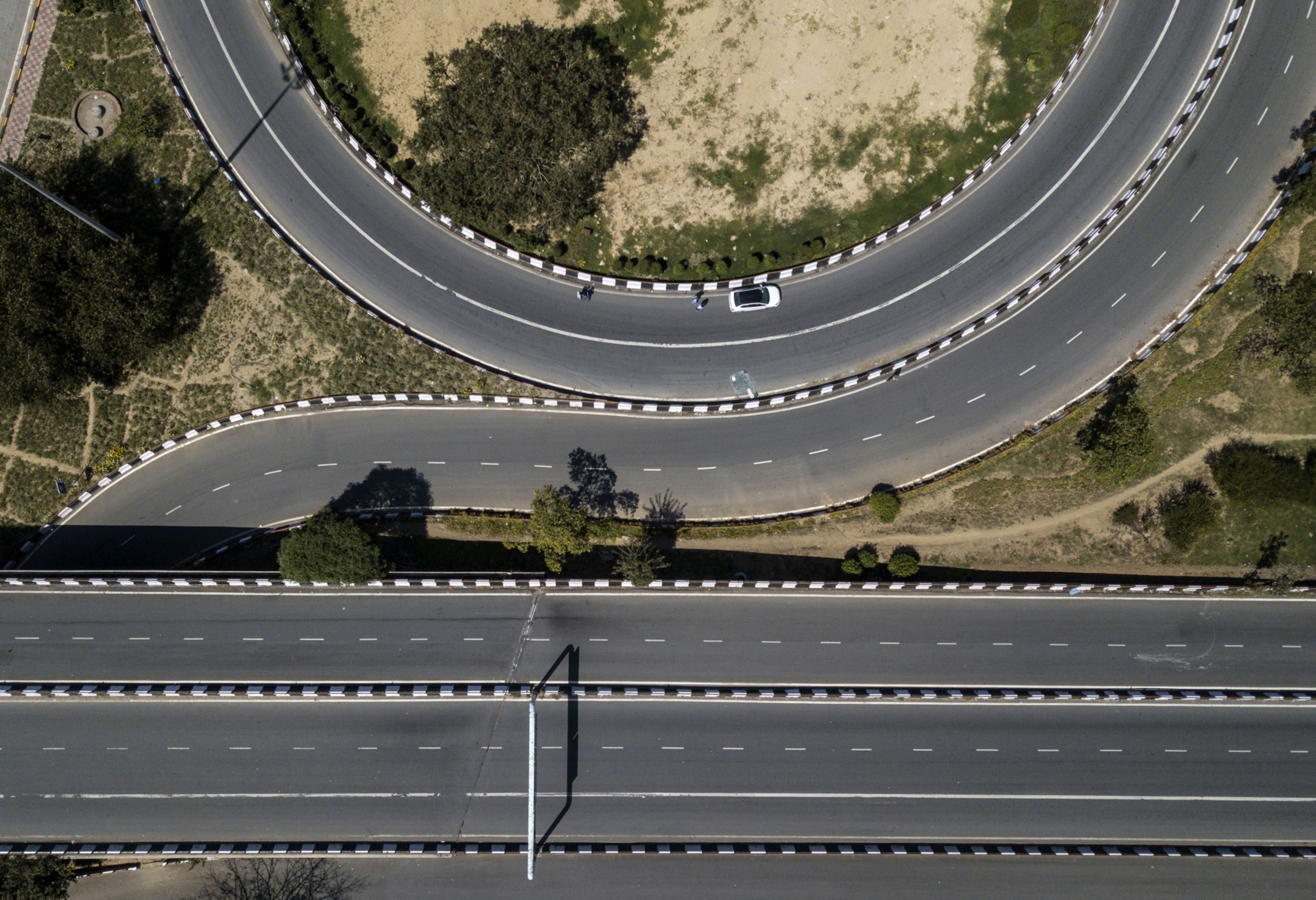 Vehicles travel along a near deserted road during a lockdown imposed due to the coronavirus in this aerial photograph taken in New Delhi, India, on Saturday, March 28, 2020. Photographer: Anindito Mukherjee/Bloomberg