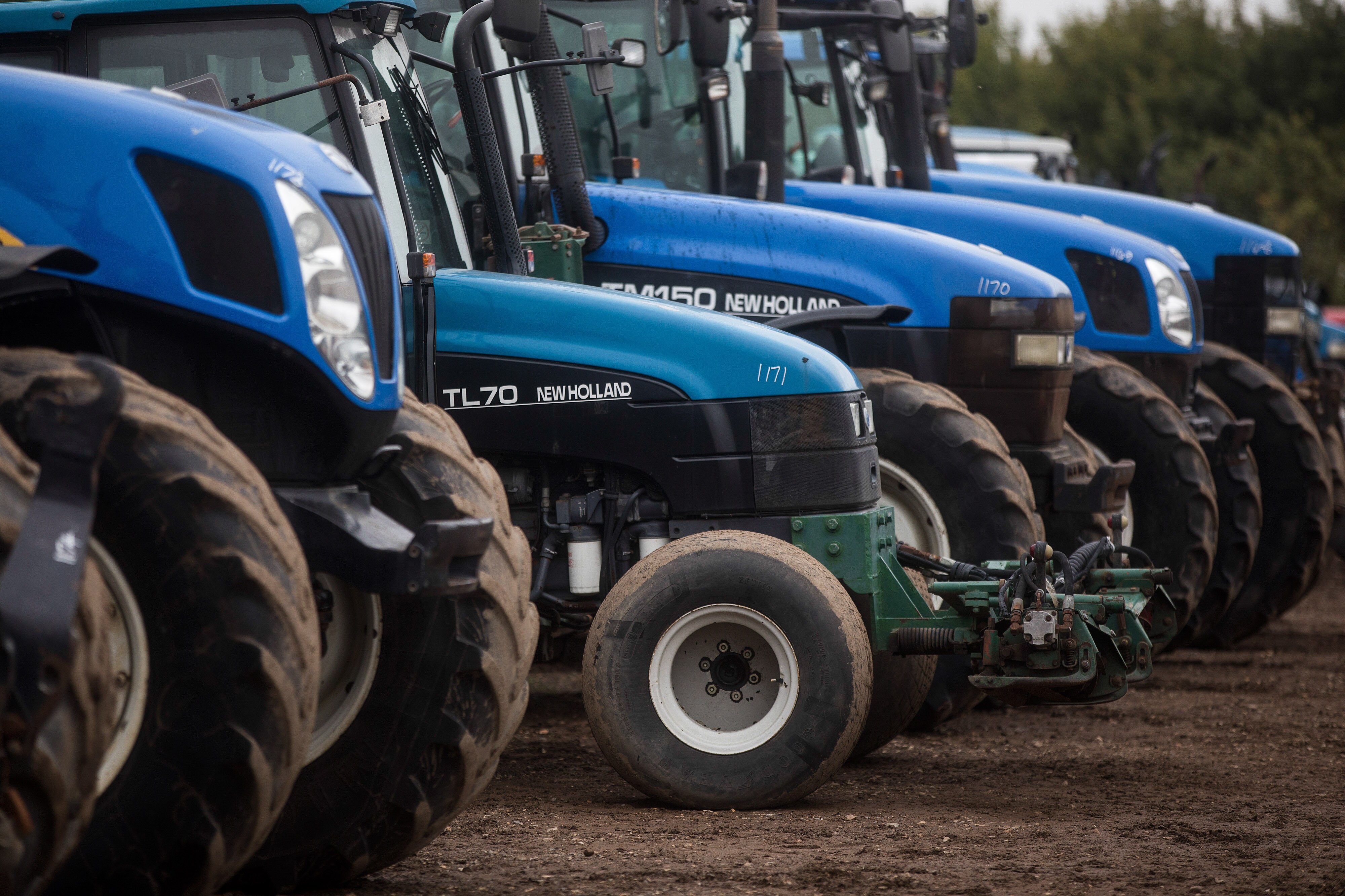A line of tractors (Photographer: Simon Dawson/Bloomberg)