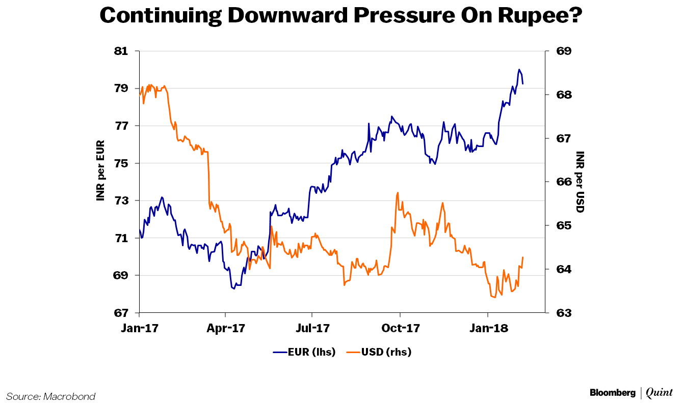 Indeed, there have been several indicators that earnings in the U.S. are gaining traction on the back of increasing labour market tightness. Average hourly earnings rose to an annualised rate of 2.9 percent in January. Higher wages might result in higher U.S. inflation and this could encourage the Federal Reserve to speed up its tightening cycle. Markets are already speculating about four hikes this year, instead of three hikes anticipated earlier. These developments illustrate the vulnerability of emerging markets such as India, as capital might be drained at a fast pace, which most definitely will have negative consequences for debt sustainability, could result in a plunge of the Rupee and fuel cost-push inflation. We have seen a weakening of the rupee against the Euro since the start of 2018.