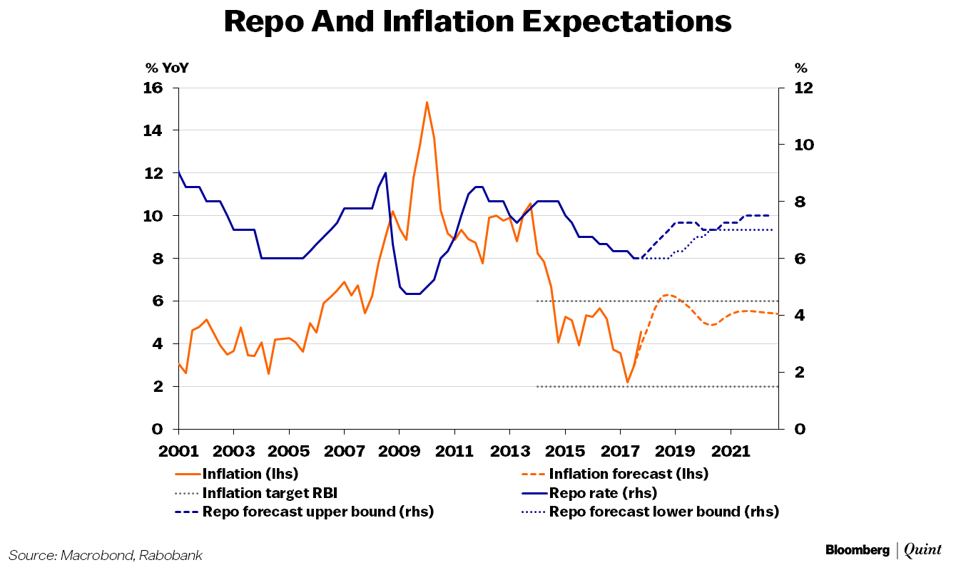 Within the bandwidth, the RBI will increase rates by 0.13 percentage points in case of a 1 percent increase/decrease of Consumer Price Index, whereas above or below the thresholds, the RBI will hike or cut rates by 0.77 percentage points for every 1 percent increase/decrease.