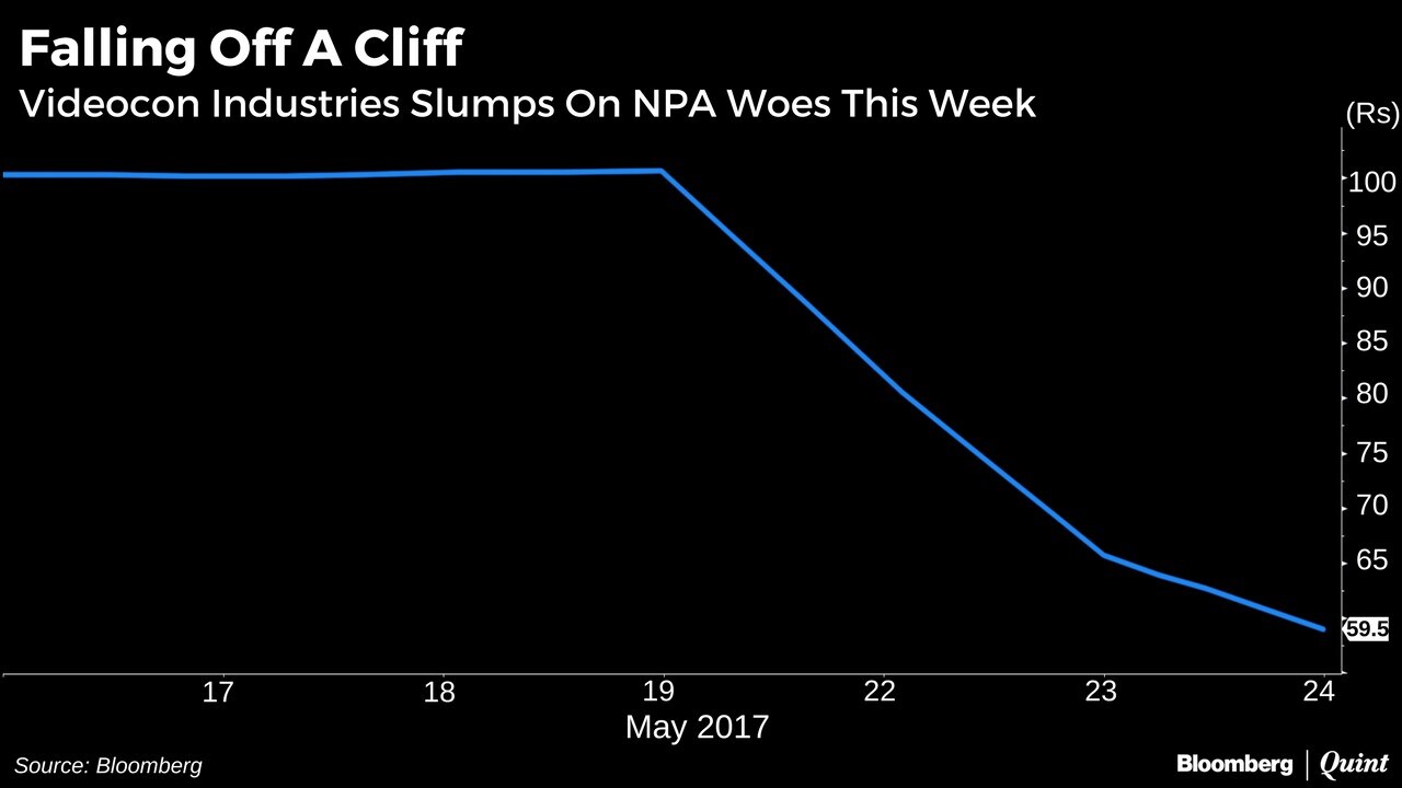 Earlier this month, public sector lender Dena Bank Ltd. had said that it had classified Rs 520 crore worth of debt to Videocon as NPA in the January-March quarter. The disclosure led to a sharp fall in the company's stock, which hit the lower 20 percent circuit for the second consecutive time on Tuesday.