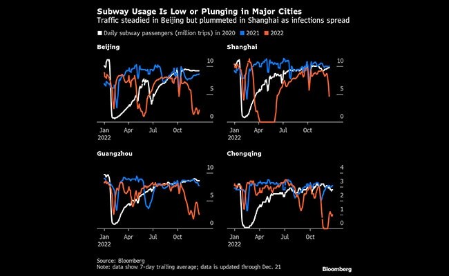 In recent days subway passenger numbers have plummeted in cities including Shanghai, Guangzhou, Shenzhen, Xi'an and Nanjing as infections surged, while in Beijing, one of the cities that experienced the infection wave the earliest, subway usage steadied and picked up slightly over the past four days, although it is still around 80 per cent below the level on the same period in 2019.
