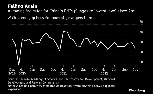 Activity at factories is probably plunging in December too, according to the emerging industries purchasing managers index, which is a leading indicator for the official and Caixin manufacturing PMIs.