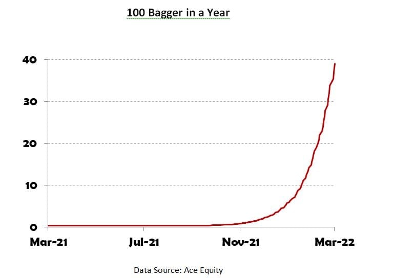 That's right. The stock of Kaiser Corporation has gained 100x in the past year, rallying from a mere Rs 0.38 to Rs 38.95.