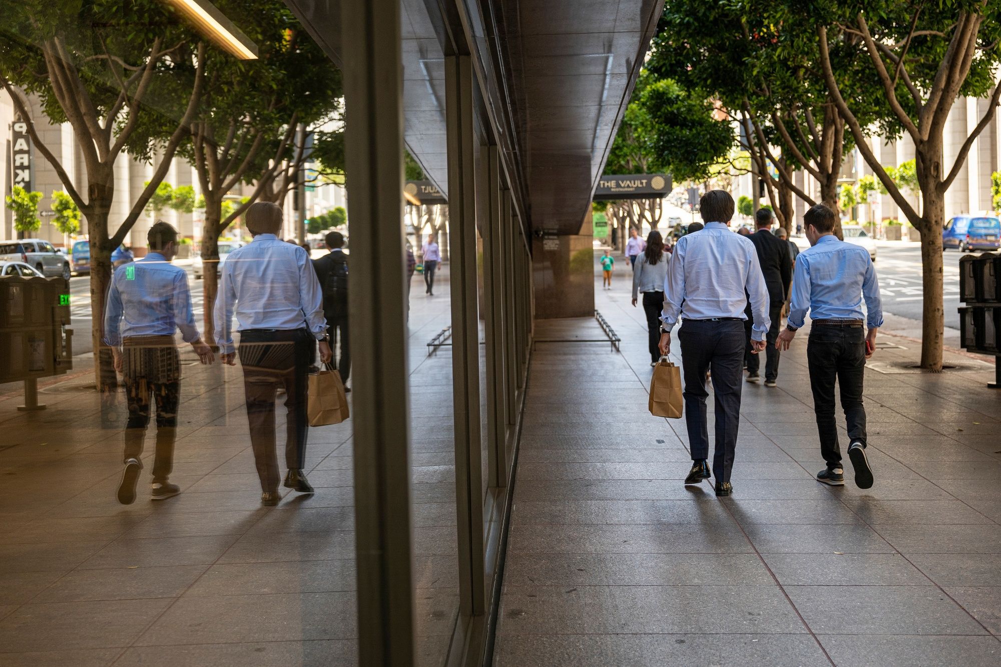 Pedestrians on California Street in the financial district of San Francisco, California, U.S. (Source: Bloomberg)