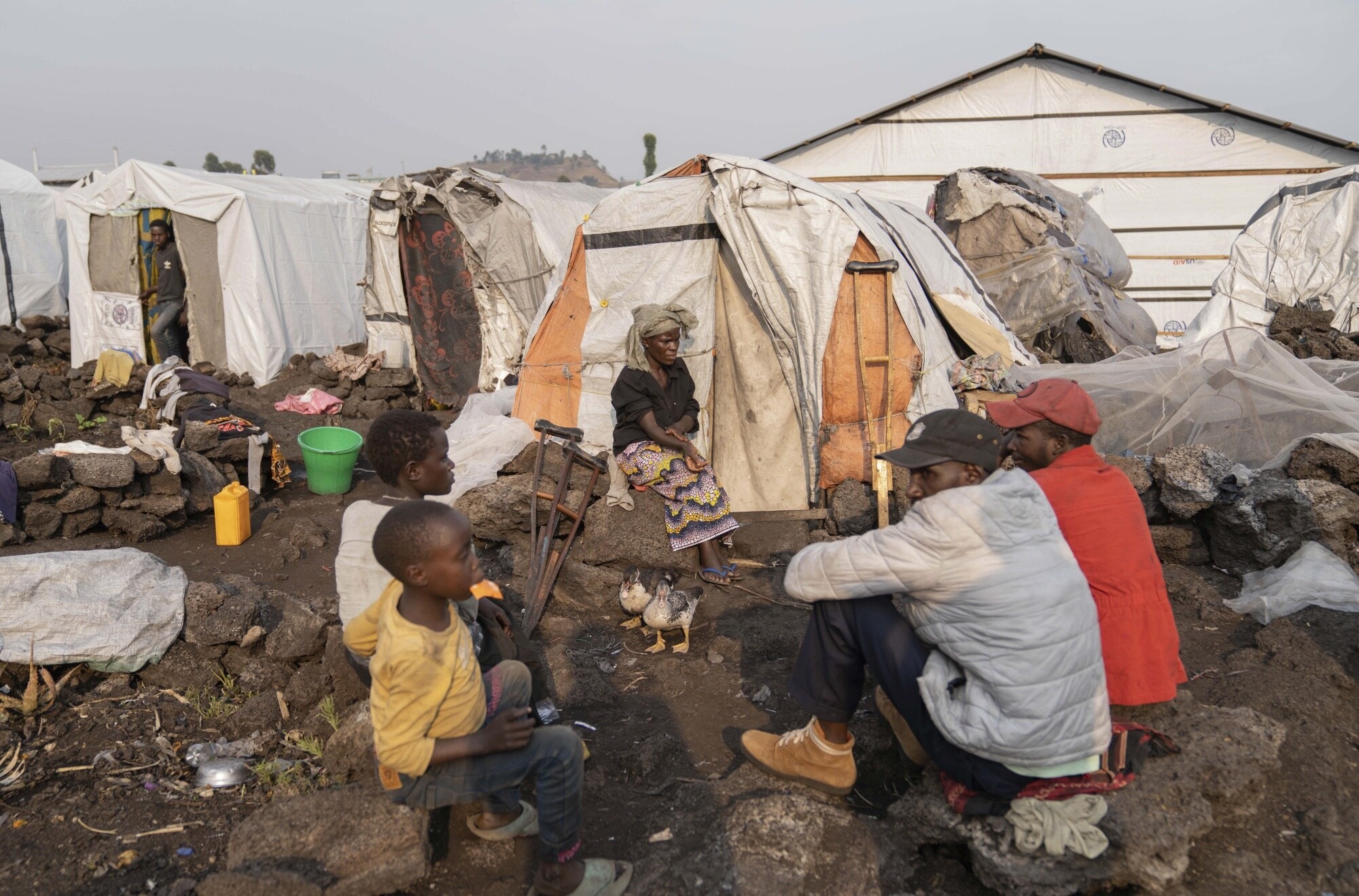 A woman, center back, suspects she may be infected with mpox, in the Bulengo refugee camp in Goma, Congo.