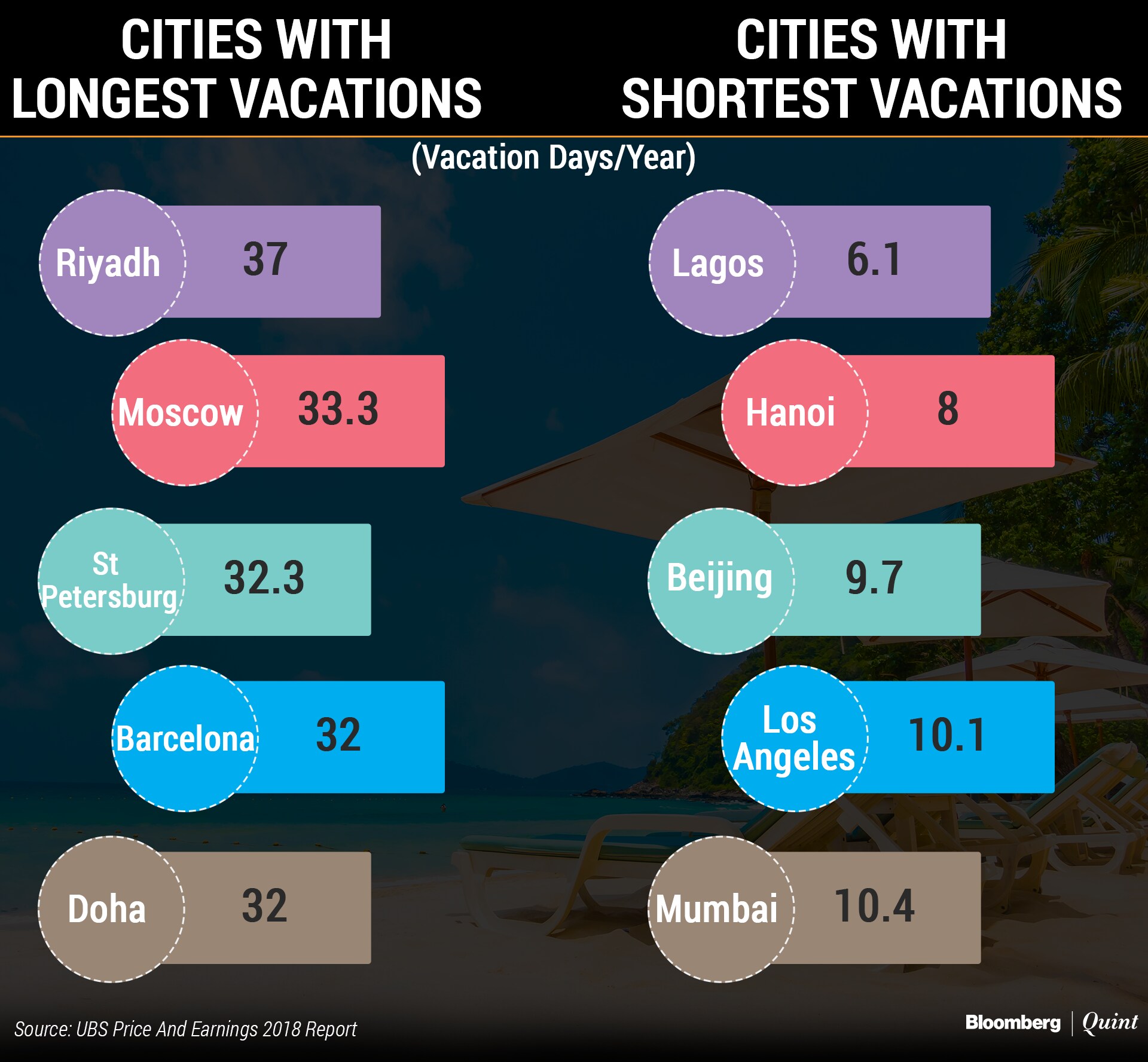 Probably because of the long working hours, employees working in Mumbai also took among the fewest vacation days. The number stood at around 10 days. Employees in cities like Los Angeles, Beijing, Hanoi and Lagos also featured in the list of shortest vacations.