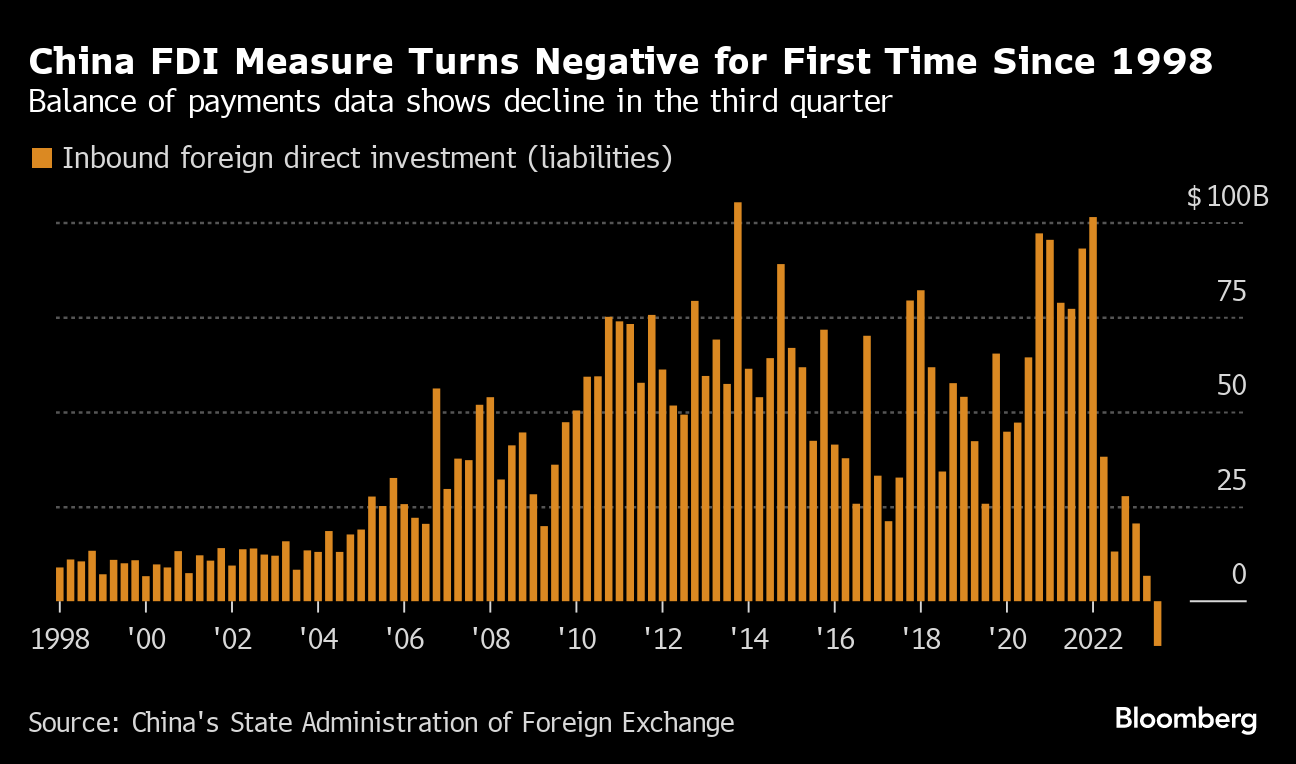 Read more: China Foreign Investment Gauge Turns Negative For First Time