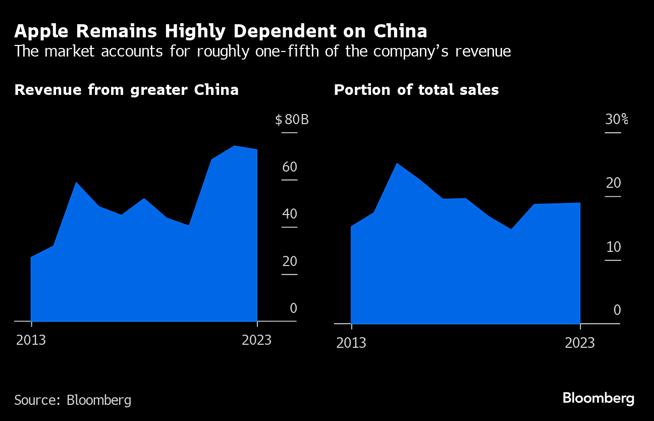 Some companies are more directly affected than others by Beijing's crackdown on foreign businesses, and few more so than Apple Inc., which generates about a fifth of its revenue from the region and manufactures the vast majority of its devices there. Apple's sales in China slowed last quarter, and it's facing rising competition from Huawei Technologies Co. Bloomberg and other media have reported that Beijing has limited the use of the iPhone and other foreign technology at agencies and state-backed firms. Government officials have denied that.
