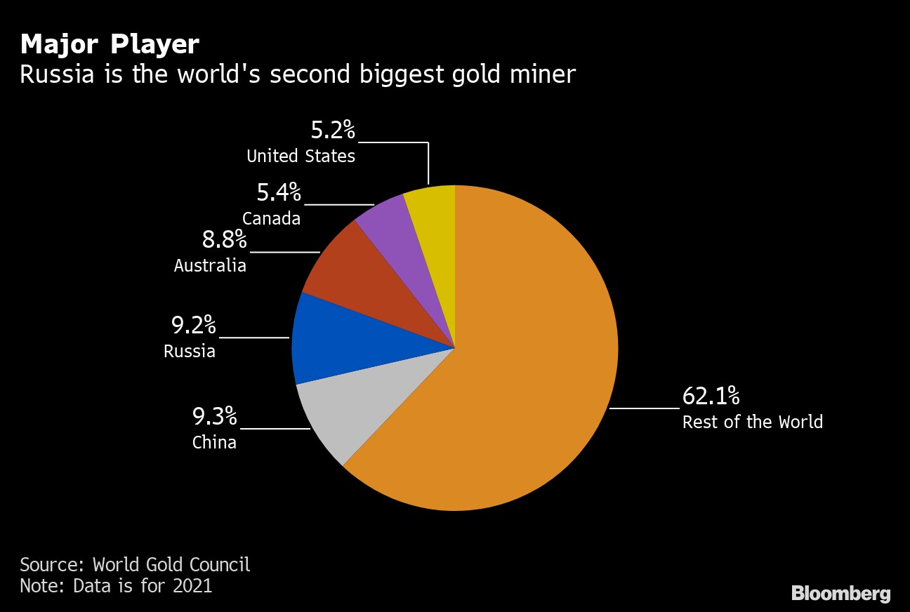 Russia is the world's second-biggest gold mining nation, typically producing more than 300 tons a year. Before February 2022, it exported metal to trade centers like London and New York, but also to nations in Asia.