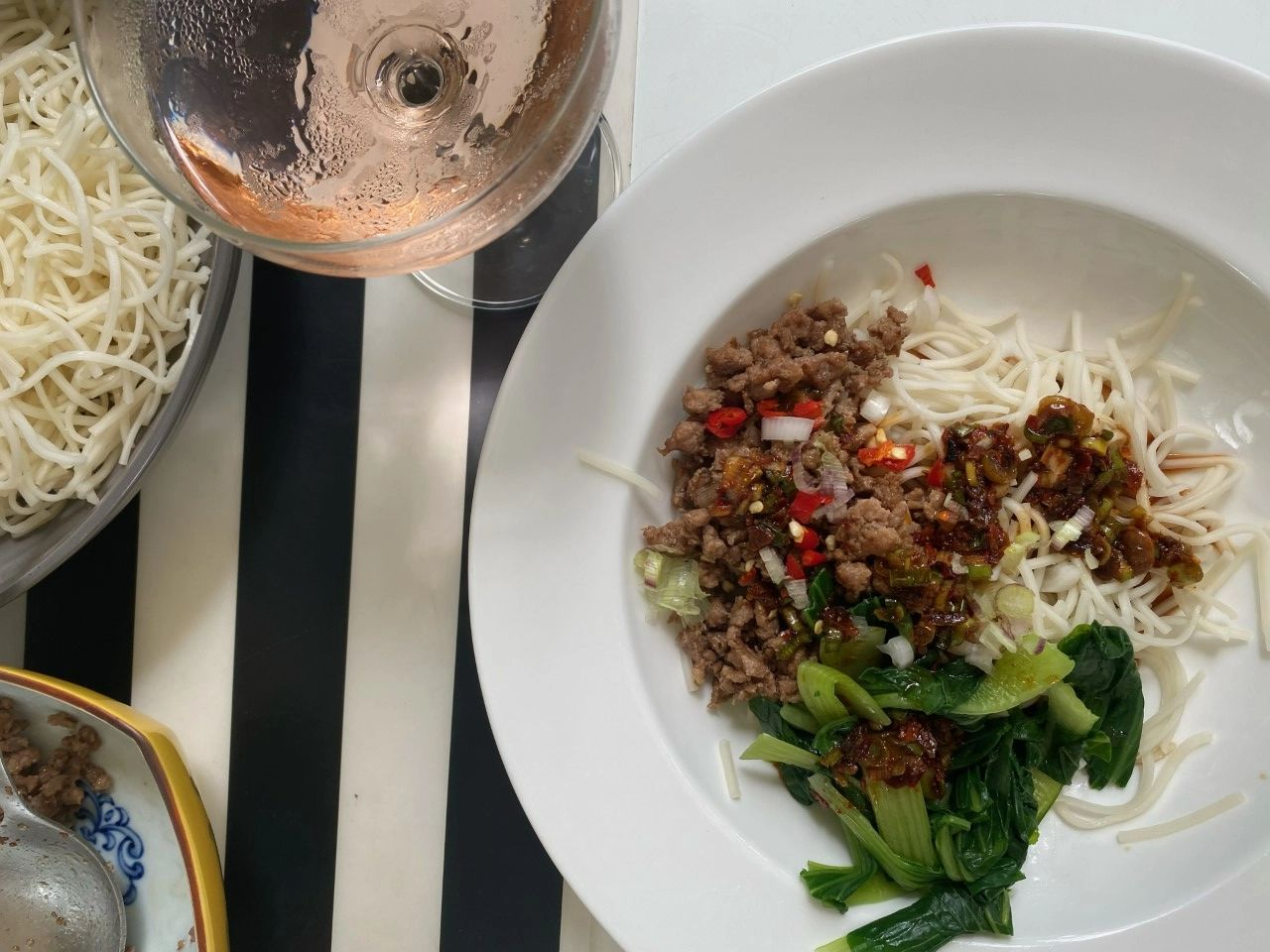 Patel's repertoire now includes everything from Dan Dan noodles made with vegetables and the 100 grams of pork mince left over in her fridge to smashed cucumbers and a full fish steamed with ginger and spring onions and topped with scalding oil. Her fried rice is spring onions and eggs, stir fried into fridge-cold leftover rice.