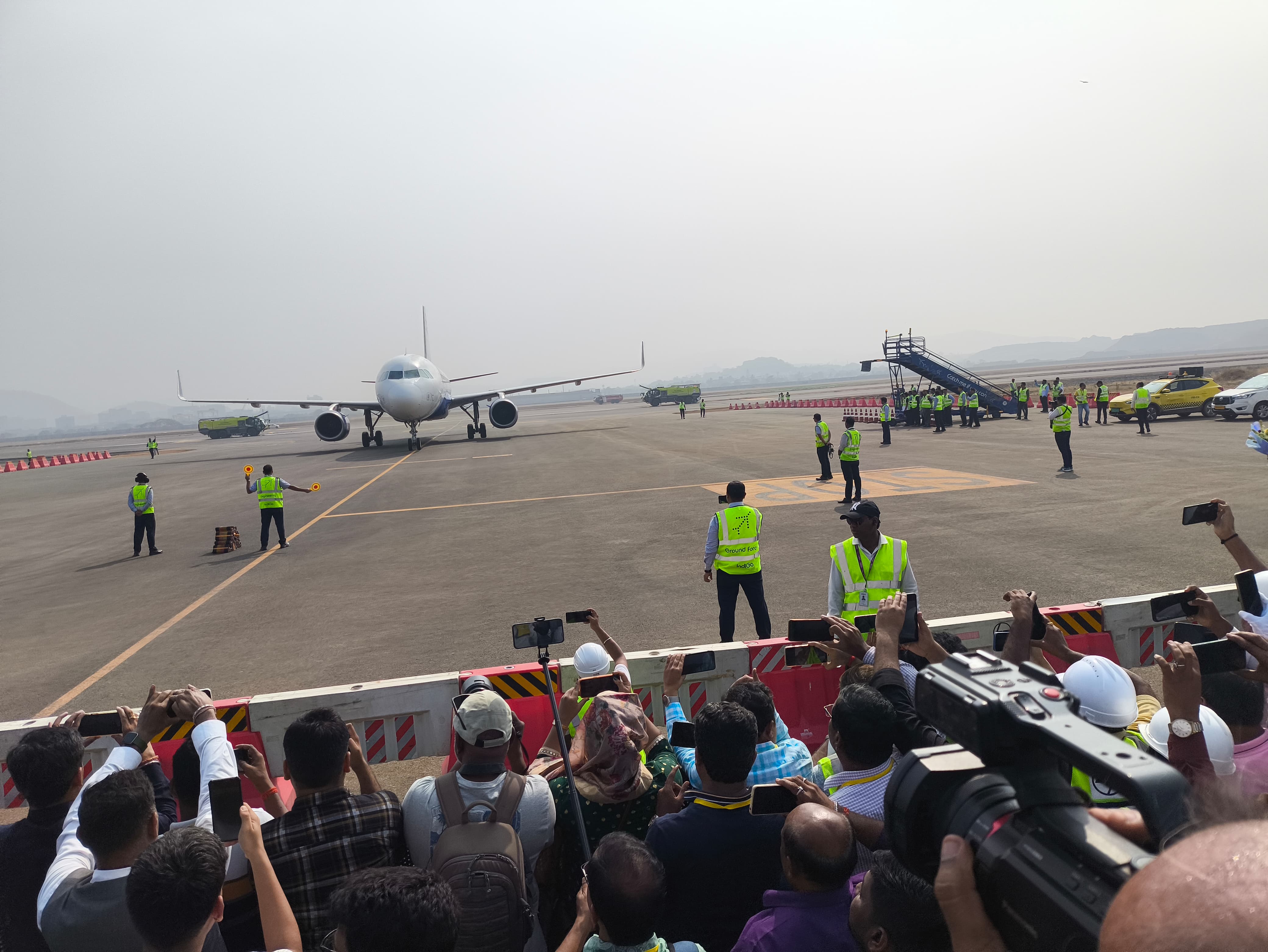 IndiGo's A320 aircraft was welcomed with water canon salute by two crash fire tenders of NMIA, a traditional ceremonial gesture to mark new beginnings. The "validation landing" is part of the "Aerodrome Certification" process, which is essential to operate the airport. The process evaluates an airport for safety and efficiency. If no anomalies are found, this would also be the final trial before the airport is commissioned.