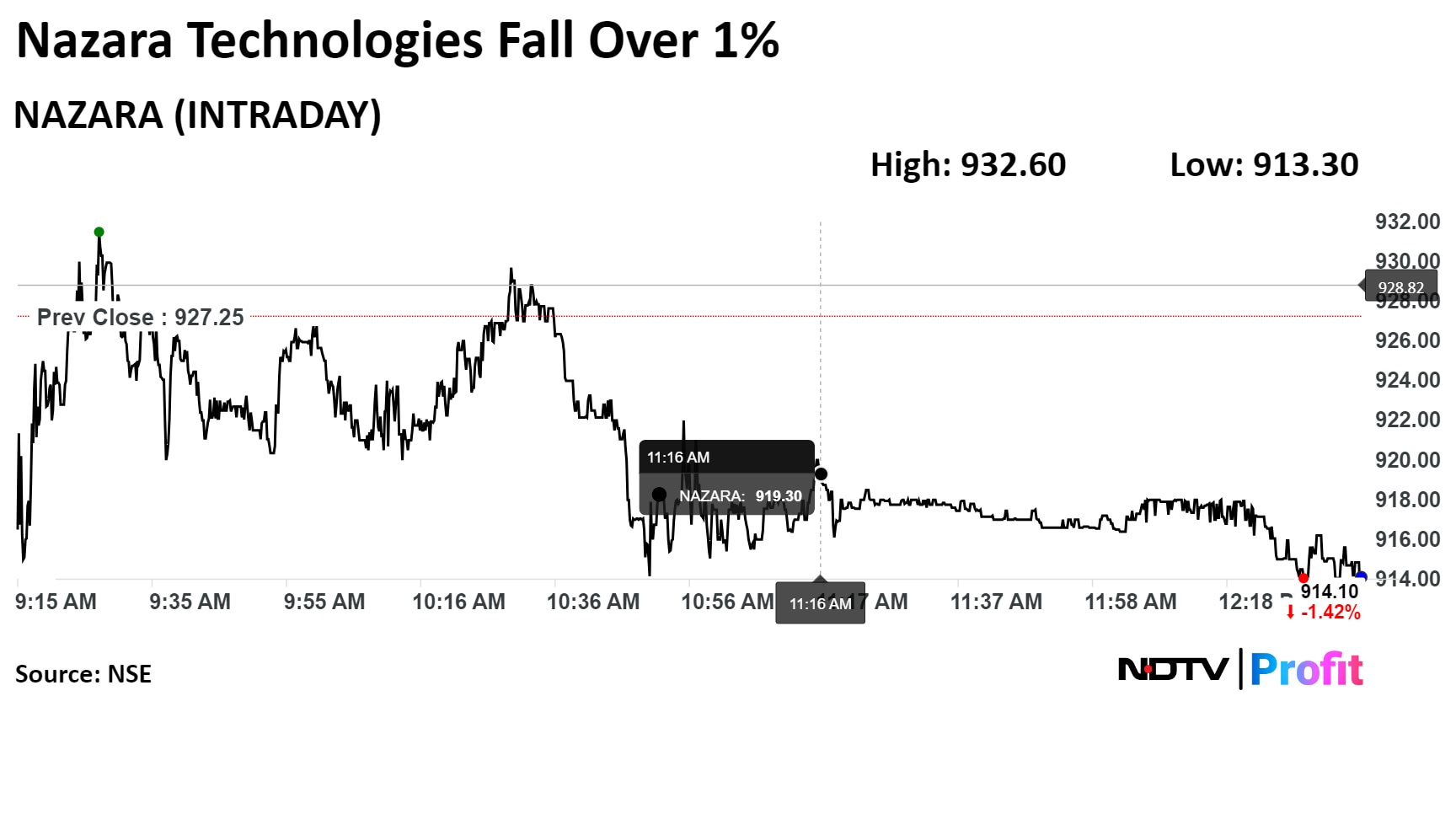 On the NSE, Nazara's stock fell as much as 1.5% during the day to 913.30 apiece on the NSE. It was trading 1.34% lower at Rs 914.80 per share, compared to a 0.7% decline in the benchmark Nifty at 12:42 p.m.