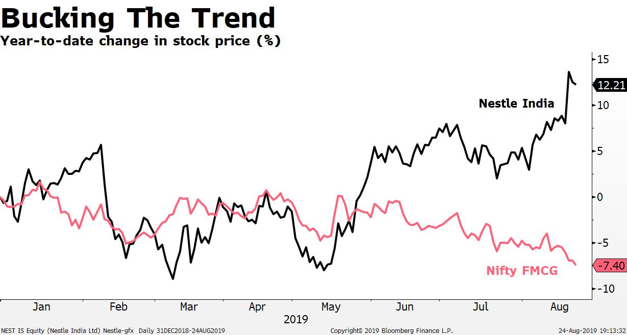 When its peers saw volume growth ease as Indians consume less in a slowing economy, Nestle India Ltd. stood out.