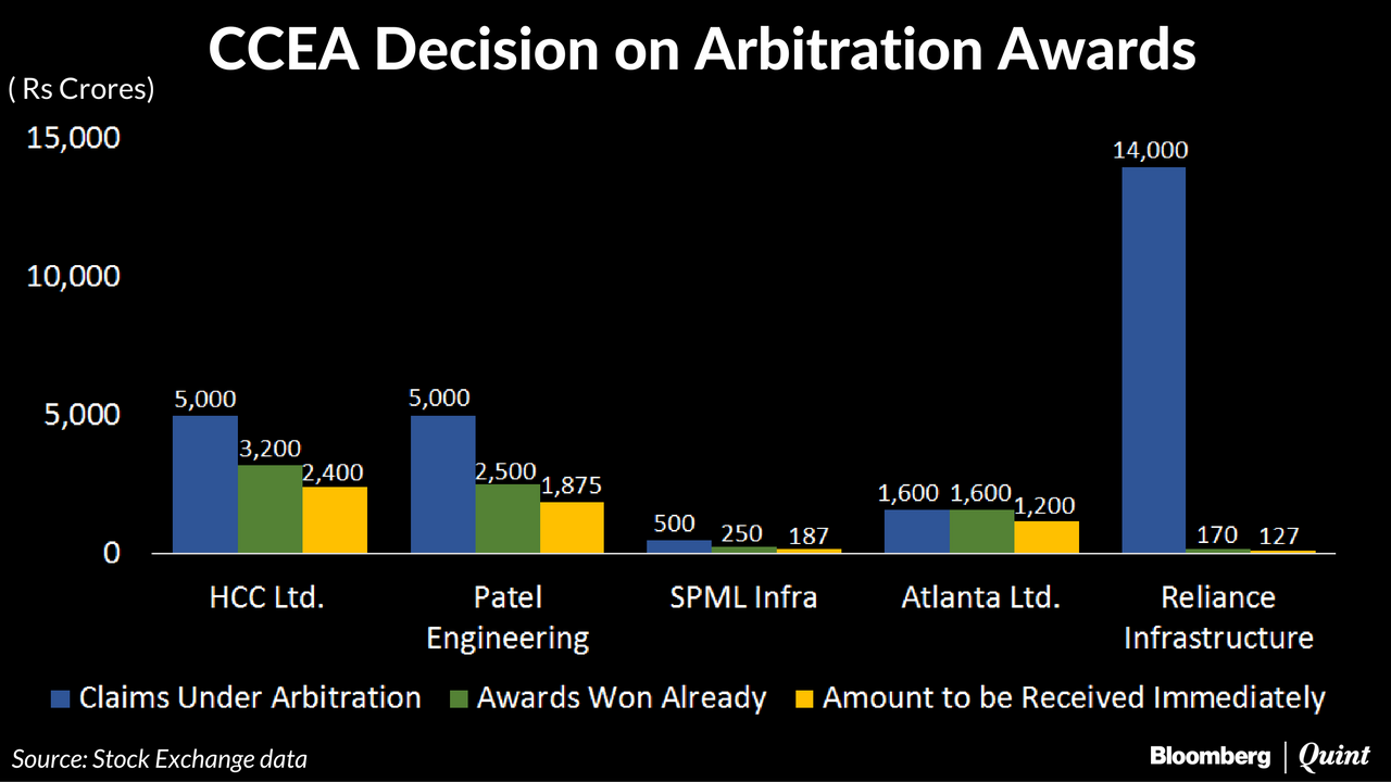 Reliance Infrastructure ltd., which has Rs 14,000 crore under various stages of arbitration for various projects, called this a ‘bold and positive move' which will help revive stalled projects which suffer due to long settlement periods, the company said in a press release.