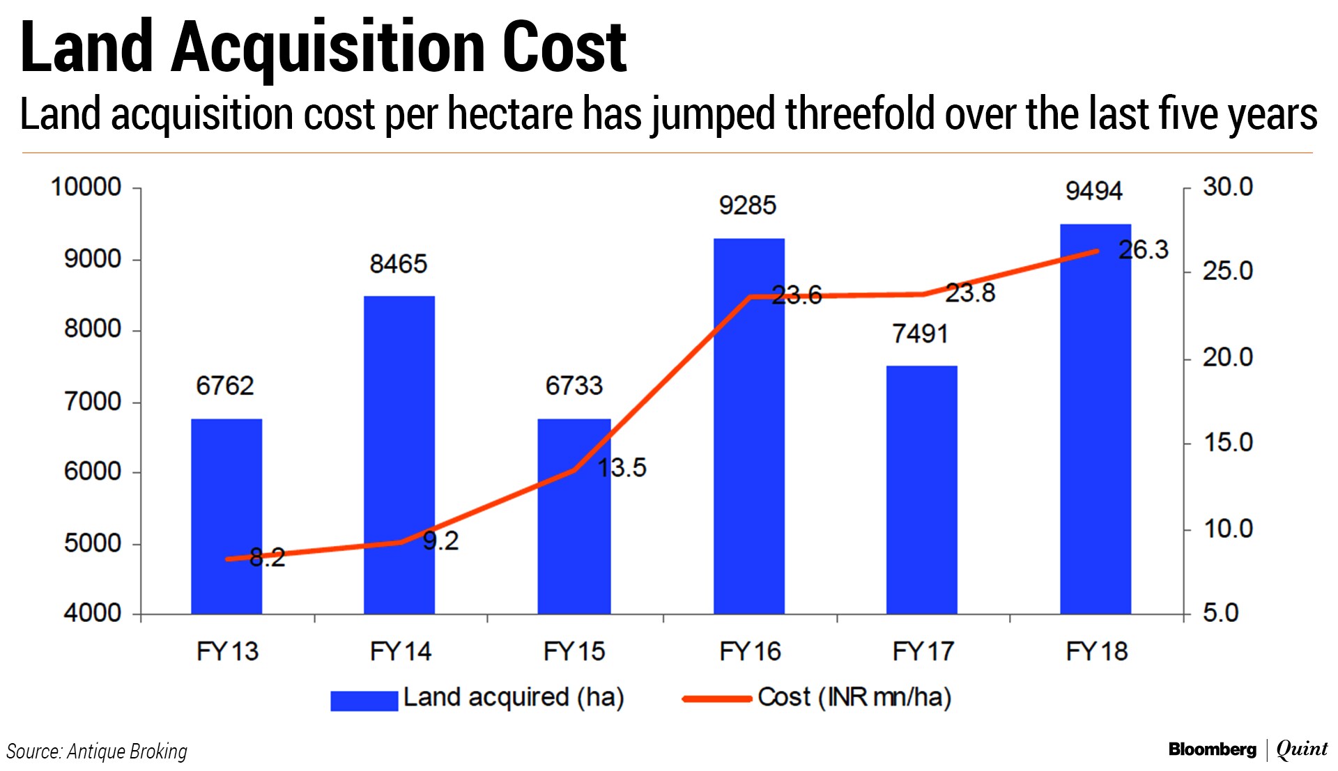The shift in models meant the government shouldered more of the project cost, especially aspects like land acquisition. According to an estimate by ratings agency ICRA Ltd., land acquisition accounts for 30 percent of the total expenses of the NHAI.