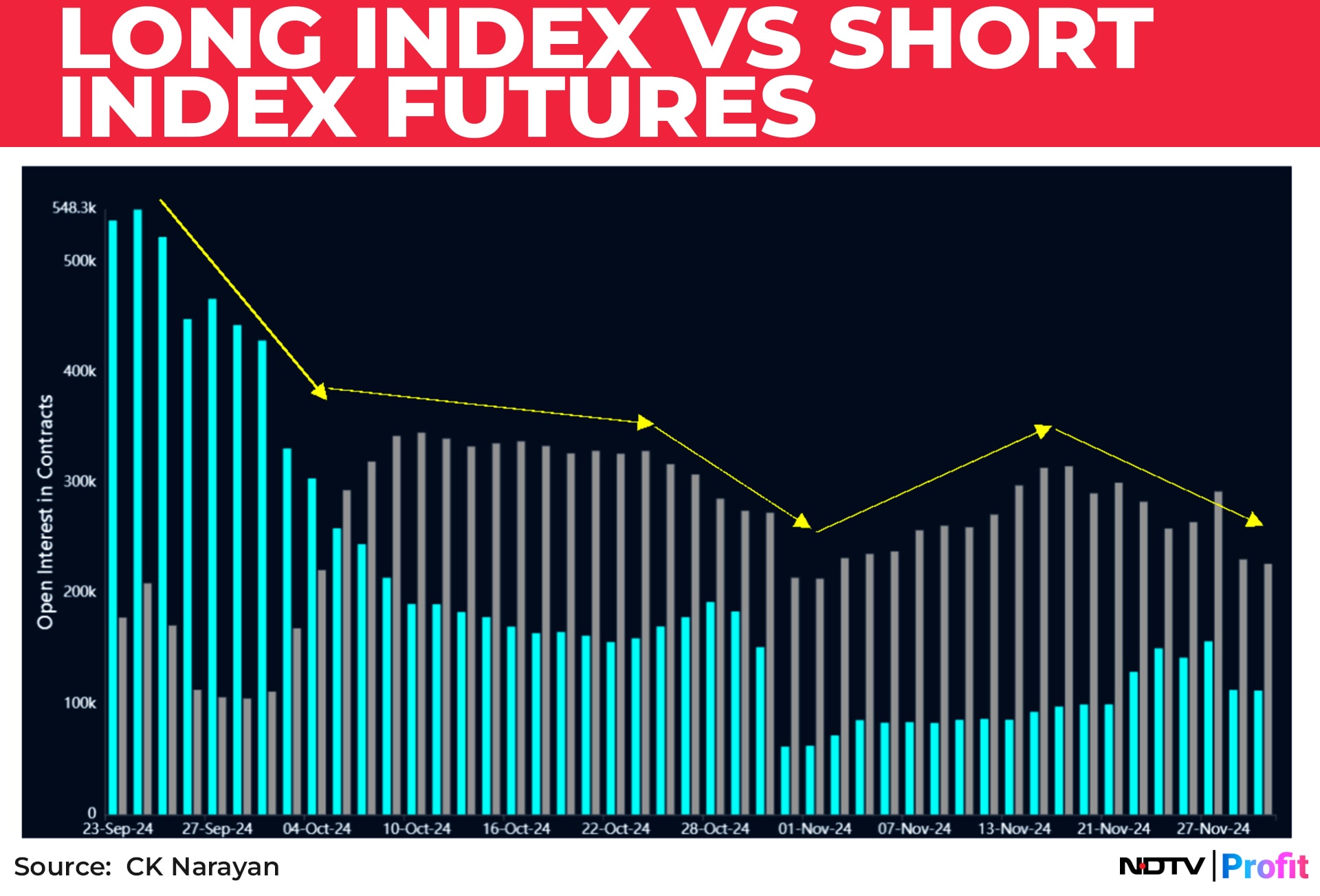 Derivative data shows short covering in Bank Nifty and decent rollovers. Since long build up is visible in futures after 21st Nov, it can be presumed that a decent chunk of longs have been rolled over too.