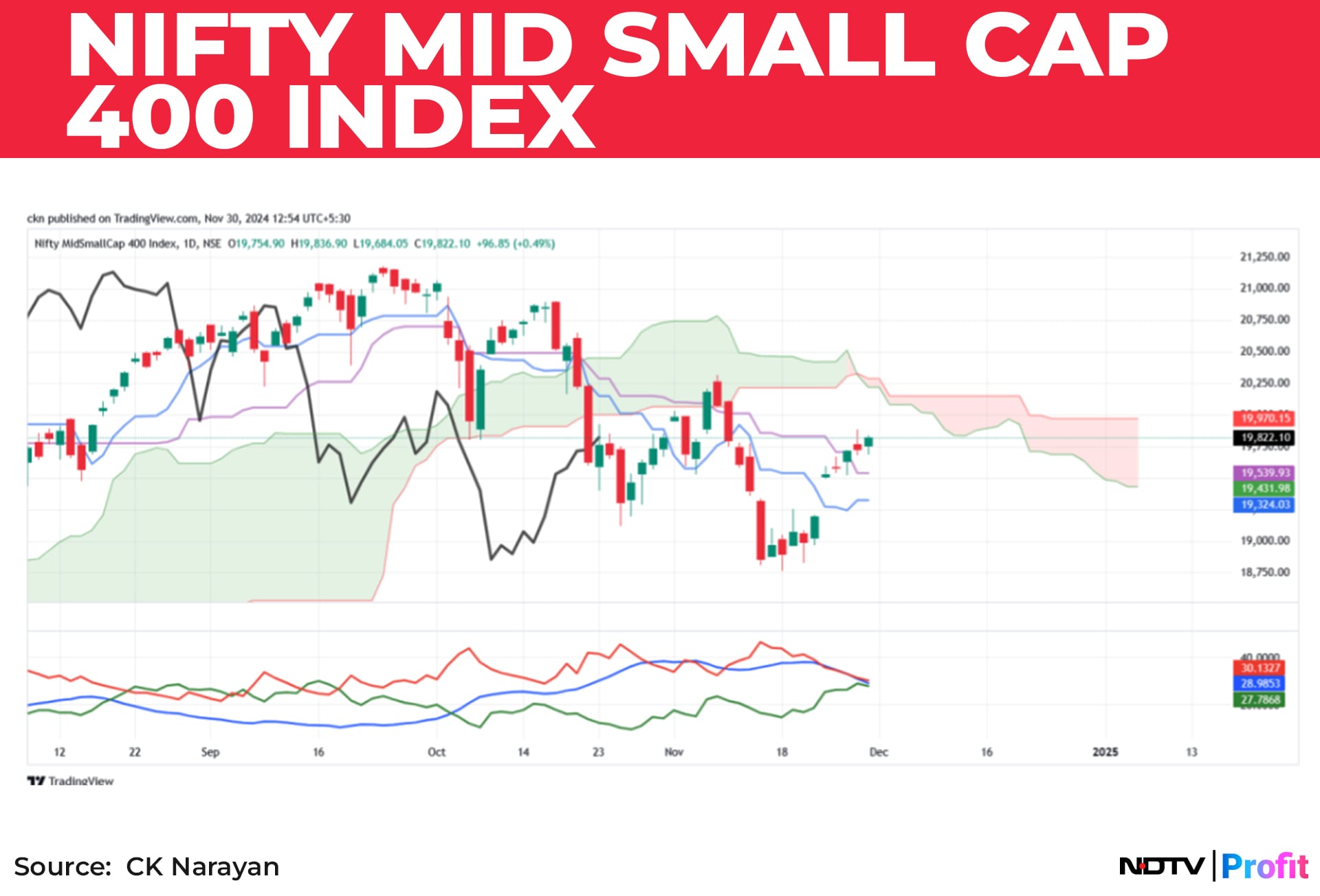 We can pause here to take a look at the other region of the market- the mid and small cap space. Chart 3 is Nifty MidSmall400 index.