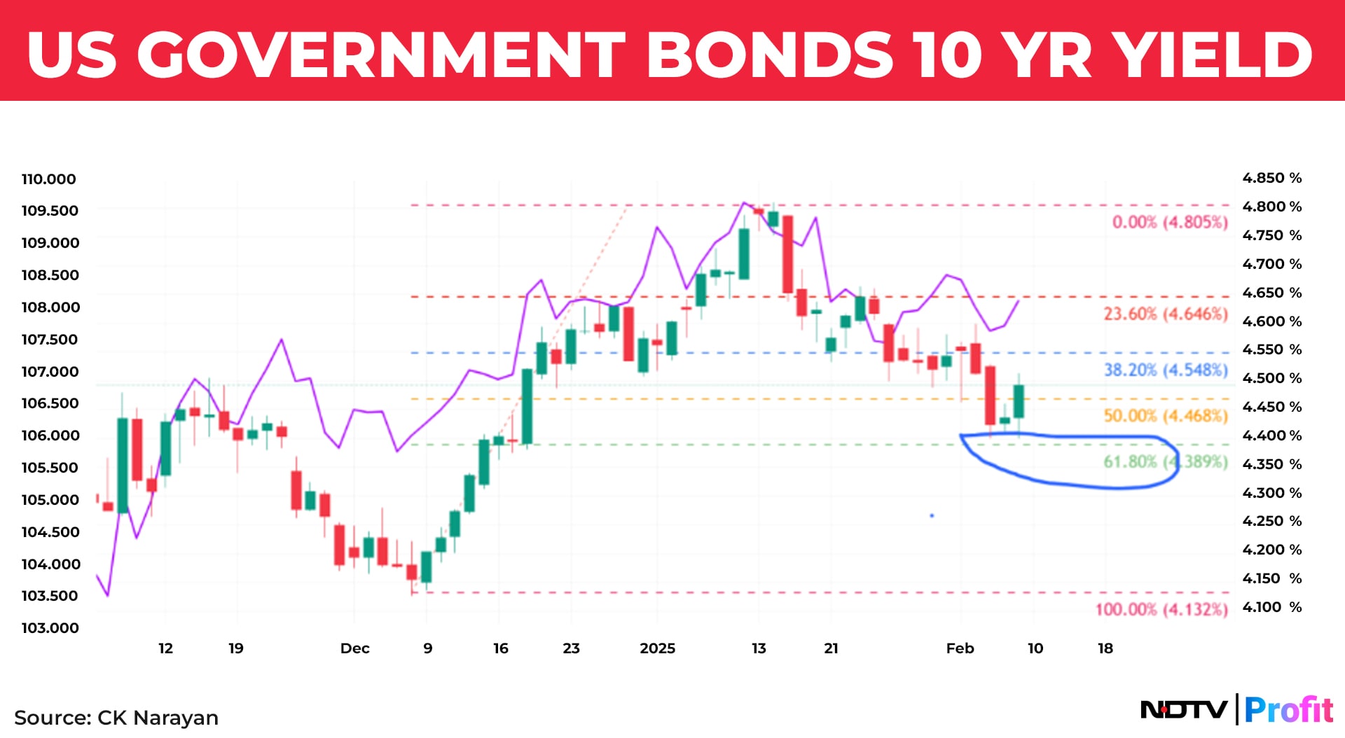 The recent decline in the yield chart began on Jan. 13, 25, and pulled back to near the 62% retracement area by last week. Expectedly, support has come through at the expected level. Hence, the dollar should strengthen from here, which would be bad news for the INR and, consequently, for the market too. We do need to keep track of all these elements now as so many dominoes are in play.