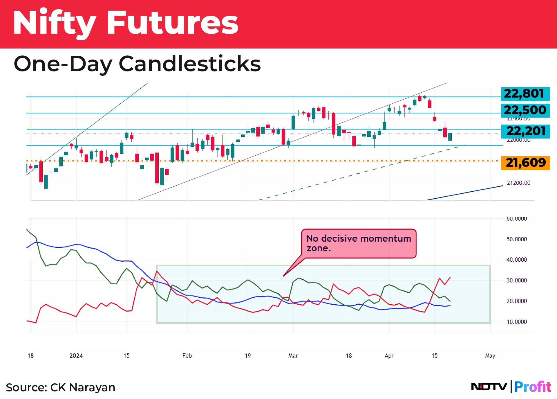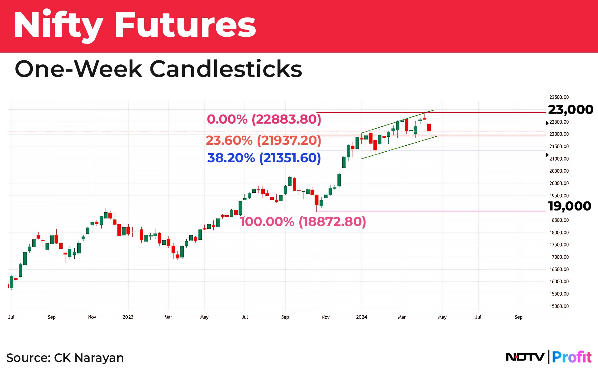 It is probable that the correction may continue towards the 38.2% retracement too (at 21,350) without anything damaging the ongoing trend. But that seems tough too, considering that we put in a lower shadow candle last week and also hit the lower end of a channelled move that we are experiencing right now. Even if it were to occur, it may be of some relevance to very short-term traders only—who, in any case, can swing over to trading short wherever necessary. Those that are following the bigger swings remain undisturbed as yet (except in their mind where they keep on playing unnecessary ‘What If' scenarios!).
