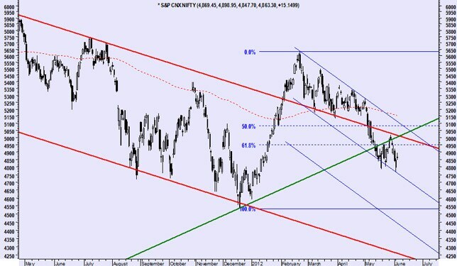 The 61.8 per cent retracement of the fall from 5,020 stands around the 4,930 mark and the 21-day exponential moving average (DEMA) stands at around 4,950.