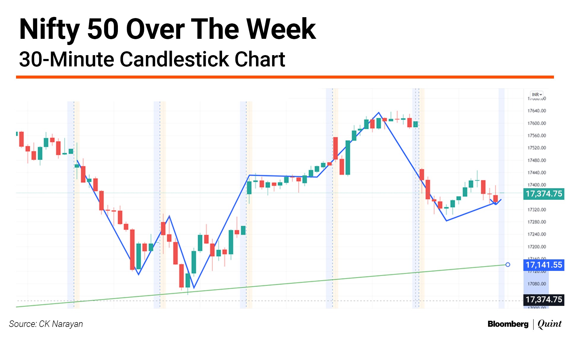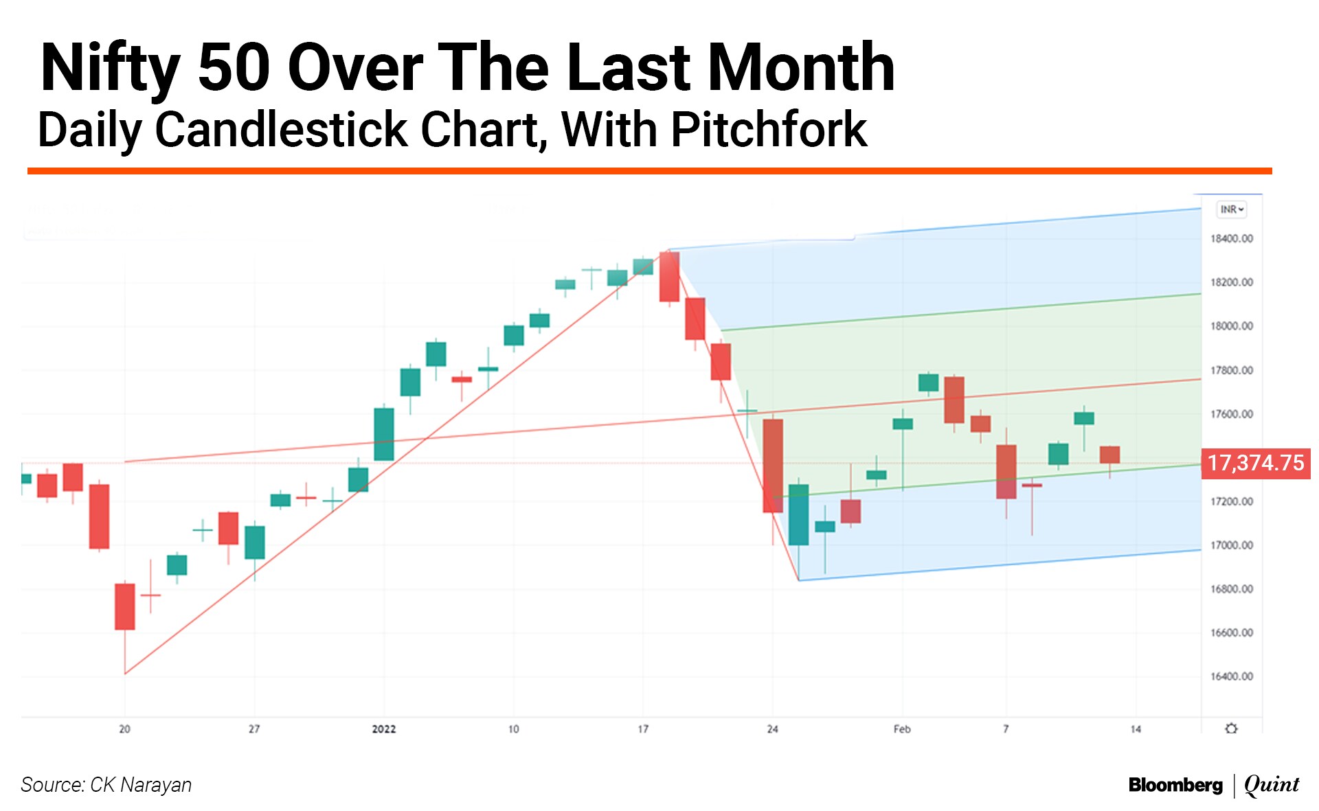 Looking at trends in the short term, the run-up of the week gone by was within a limited price cycle distance and if the Nifty were to fall beneath 17,270 in the week ahead, we may see some continuation towards the pitchfork support. To stay aloft and give the bulls a better shot at moving markets higher, the Nifty needs to be pushed and held above 17,500. Not too difficult for either side to break the levels. So we need to watch and proceed.